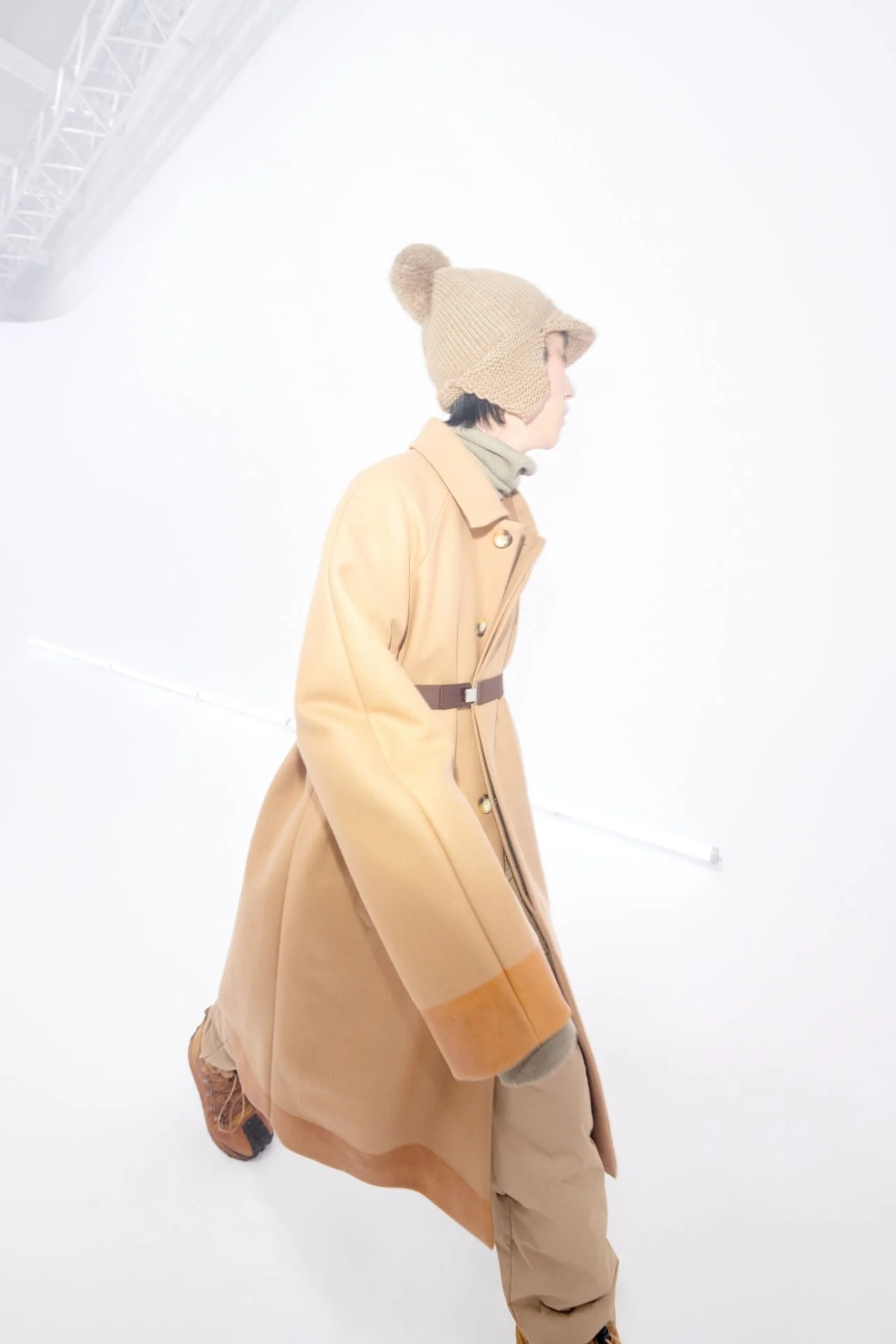 Last Autumn/Winter Miuccia Prada and Raf Simons presented the PRADA men’s collection digitally, and it was also the first co-designed collection for the pair. This season they were back to a live presentation and they invited a slew of celebrities with them to welcome us back. Kyle MacLahlan opened the show, and in between - without being distracted - we saw others like Asa Butterfield, Ashton Sanders, Louis Partridge, and even Jeff Goldblum closing the show. There were very strict codes in this season’s show. The strong shoulders that defined the opening navy wool coat on MacLachlan showed up in the line-up also as a flannel blazer, a pliable calf military belted trench, and even in structured wool sweaters fashioned at the shoulders to hold the shape. These strict shapes were contrasted with the boiler suit used as underwear and outerwear in silk or leather. The prints were used sparingly on a belted trench or a boiler suit, and also as a sliver or a jacquard detail peaking out at the top of shirts. Woollen furry cuffs were used as embelishment on tailoring, as well as on bomber coats, which also created a uniformity to the familiar shapes seen throughout the show. Like the collection details, there is a certain breed of celebrity that Prada can cast that not only makes sense for the brand, but maintains a certain intelligence and discretion that we continue to expect from them. SIDE BAR: the pea green carpet and chairs were a major situation.