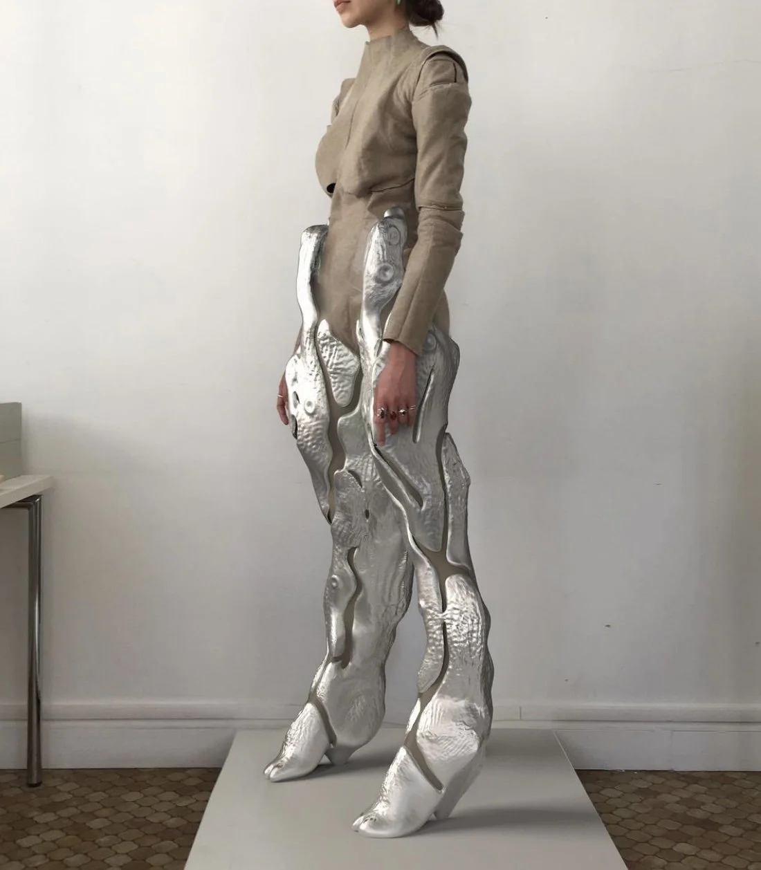 Victor Clavelly: The most complicated practice is leather. This year, for my next collection, I am developing leather pieces, jackets, gloves, and accessories, with a teacher from my former school, who trains me on everything there is to know about leather. I learn a lot and I will be able to develop exceptional pieces that I could never dream of doing.