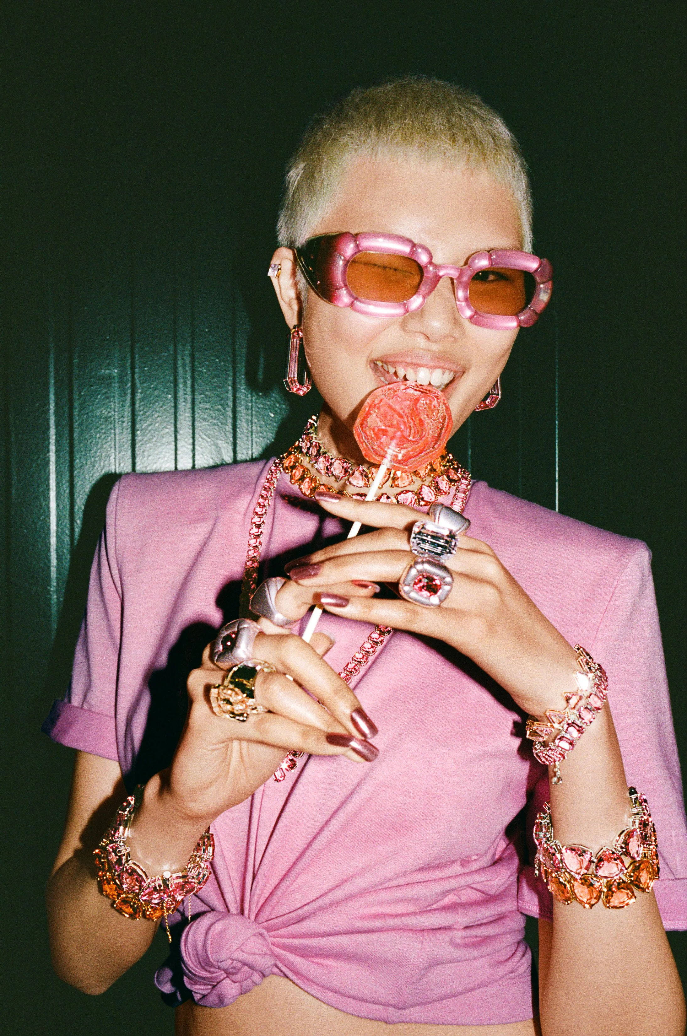 In a year full of restrictions, crashes and lack of physical experiences, Swarovski defied all odds. Presenting Collection I in February, the Austrian jewellery house turned a new, refreshed and colourful chapter. Following the new collections, the brand’s identity and physical retail space was completely reconstructed to portray the vision of how jewellery is more personal than ever. All of this was made possible by the fearless and innovative vision of its newly appointed creative director, Giovanna Engelbert. In conversation with Perfect, the Italian-born designer maps out the future of Swarovski and how collaboration with strong women like Adwoa Aboah and Amina Muaddi is crucial to her vision.
