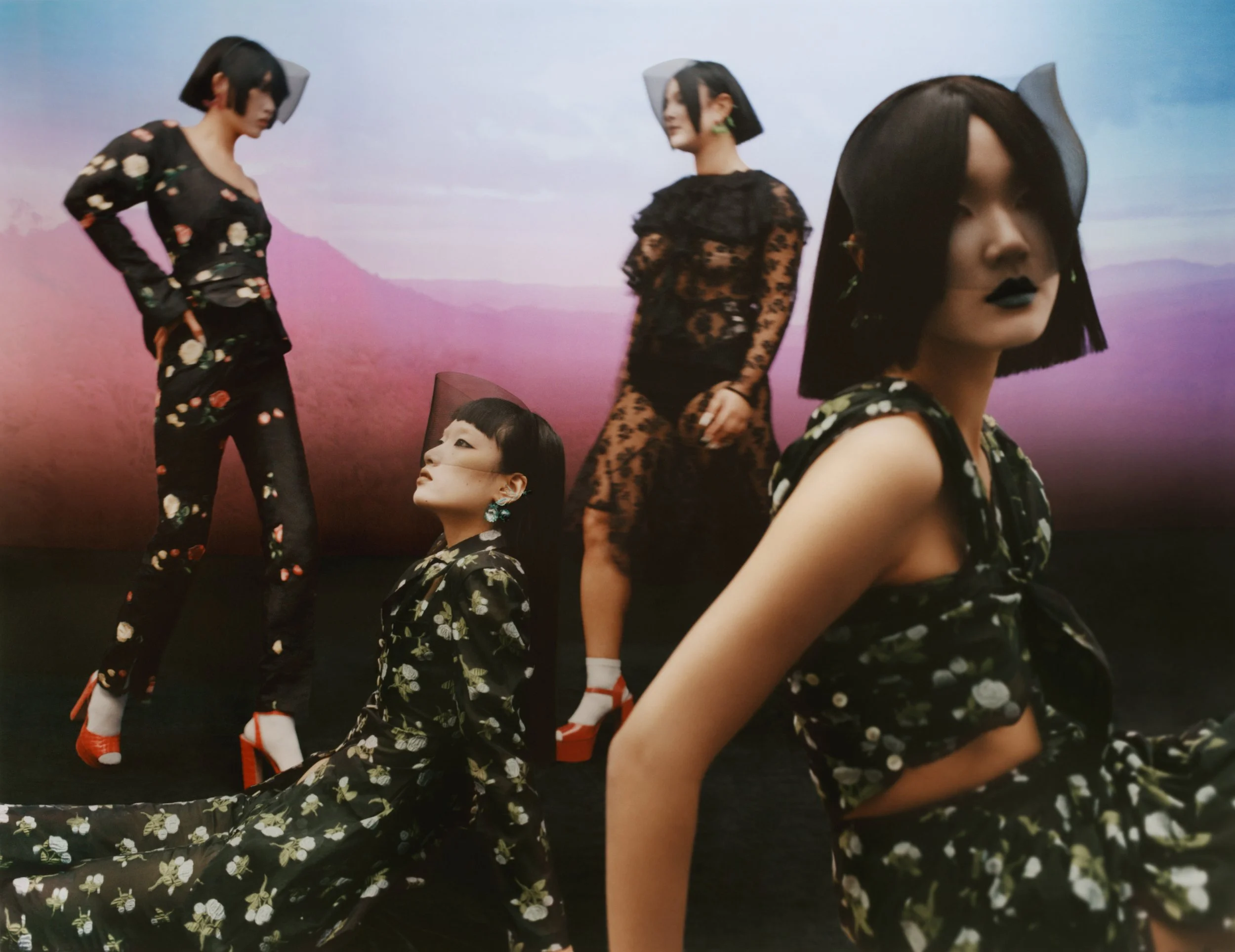 The armed women she looked to for that collection were the European frontierswomen that pushed across North America in the 19th century, their sepia portraits forming part of her research. Wang brings a strong and specific historical element to every collection. Spring 2020, for example, was inspired by characters from The Peony Pavilion, a Japanese romantic stage drama from the 16th century; autumn 2021 took its cue from art-history references a millennium apart, using visual motifs found in Chinese landscapes from the Tang dynasty in a collection inspired by portraits of mothers and daughters by the American impressionist artist Mary Cassatt. Why are these call backs to the past so important to Wang? ‘I think it’s related to my futurism. Because I feel like what we have now and what we will have in the future is all based on what we had in the past.’ It’s a case of knowing where you’ve been to divine where you might be heading. Creating something new, she explains, ‘doesn’t mean you have to imagine something totally different; everything has been done before.’