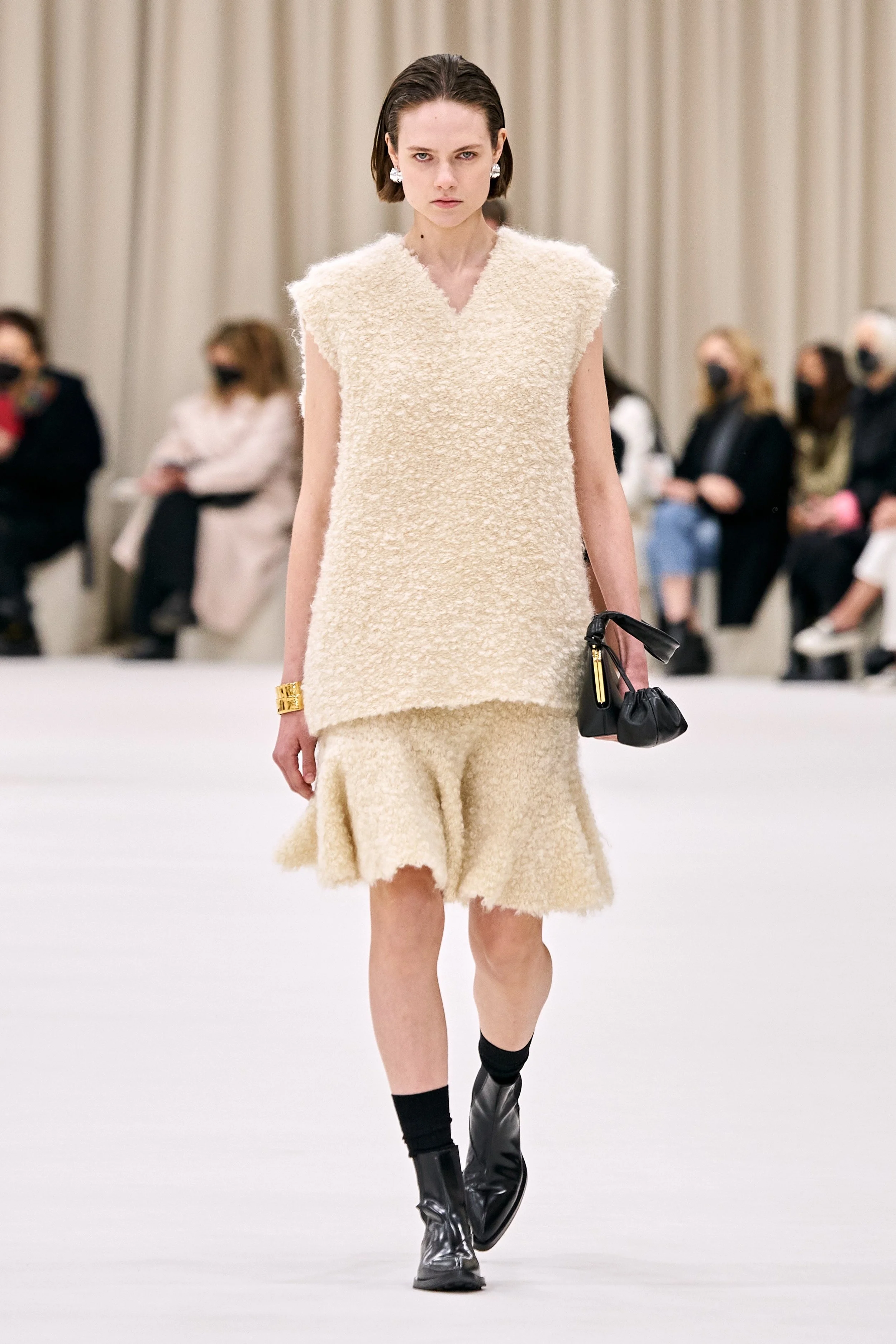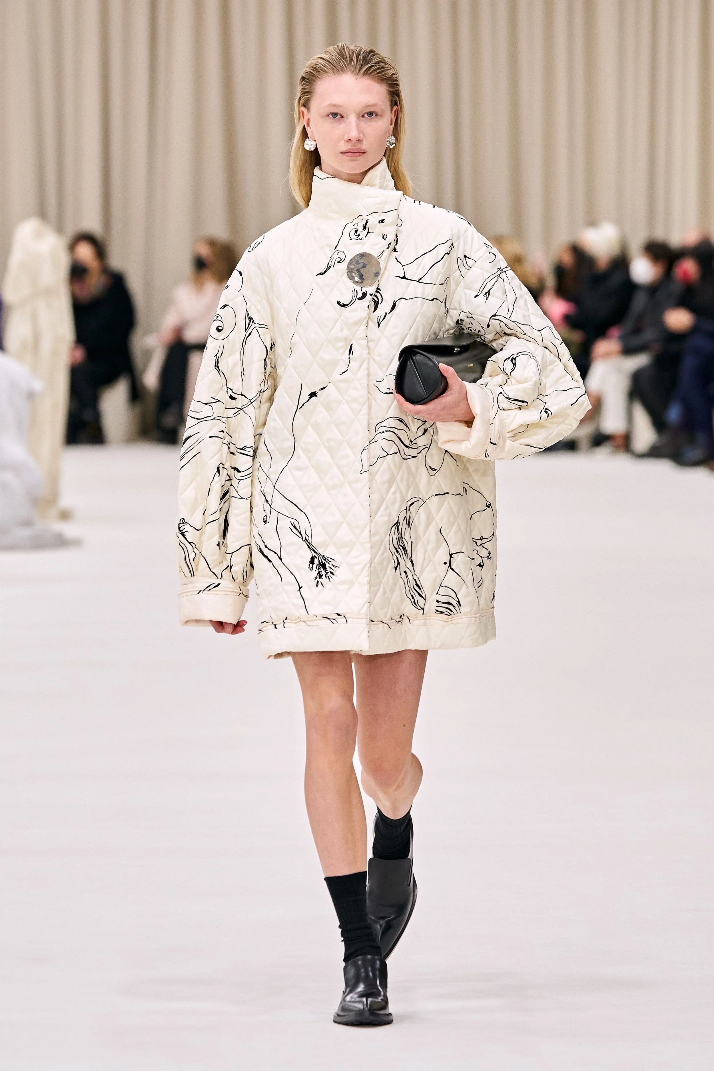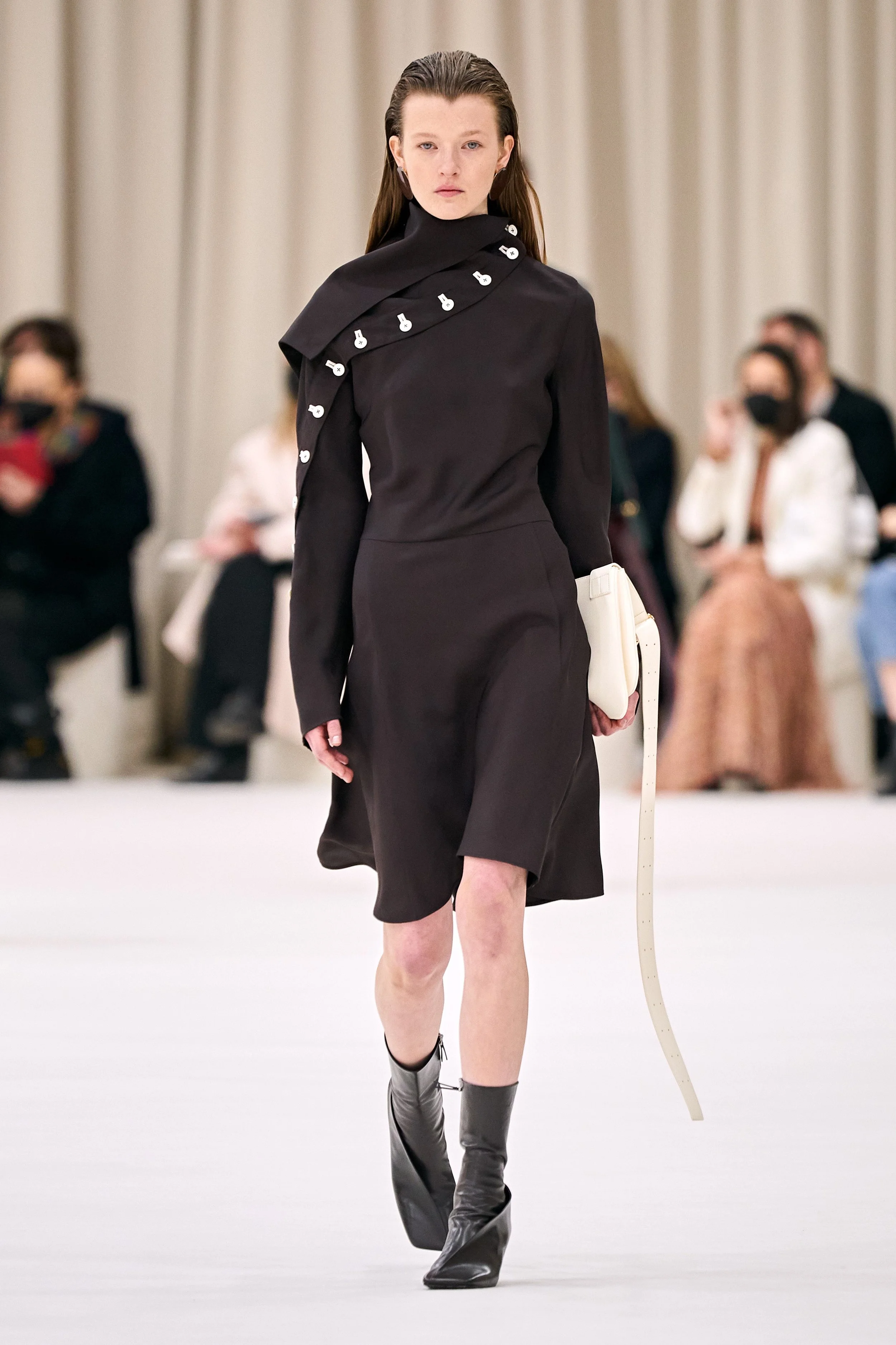 Lucie and Luke Meier of Jil Sander are all about structure this season. Showcasing their AW22 collection in Milan, the duo brought on a sophisticated, refined sense of proportions, exploring different understandings of the body. As tailoring has taken on new heights and dimensions across the board this season, the Jil Sander design duo are exploring couture-like hourglass shaping within ready-to-wear, whilst also keeping it playful and fresh.