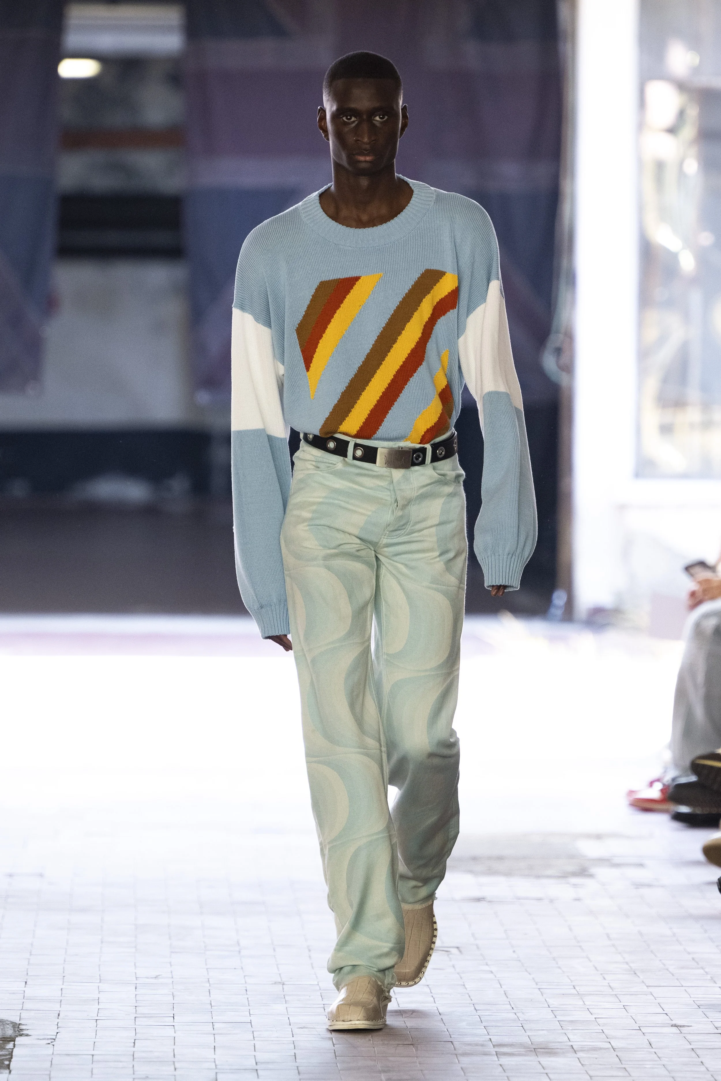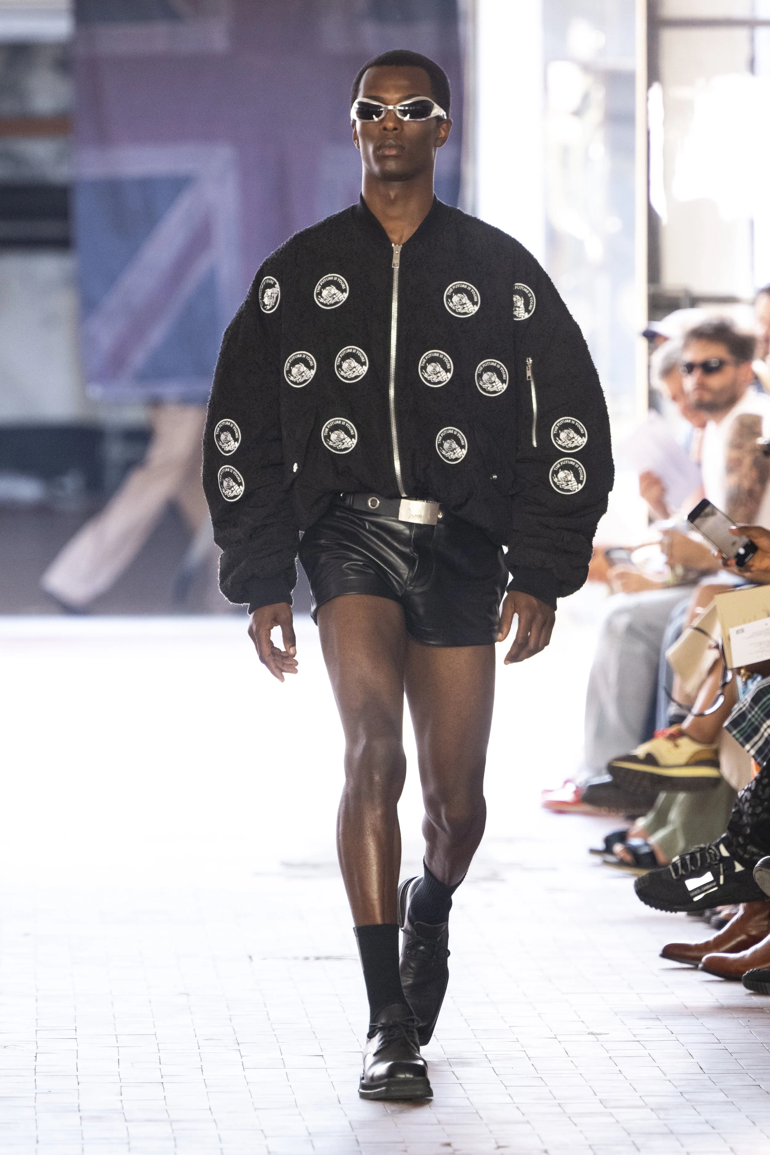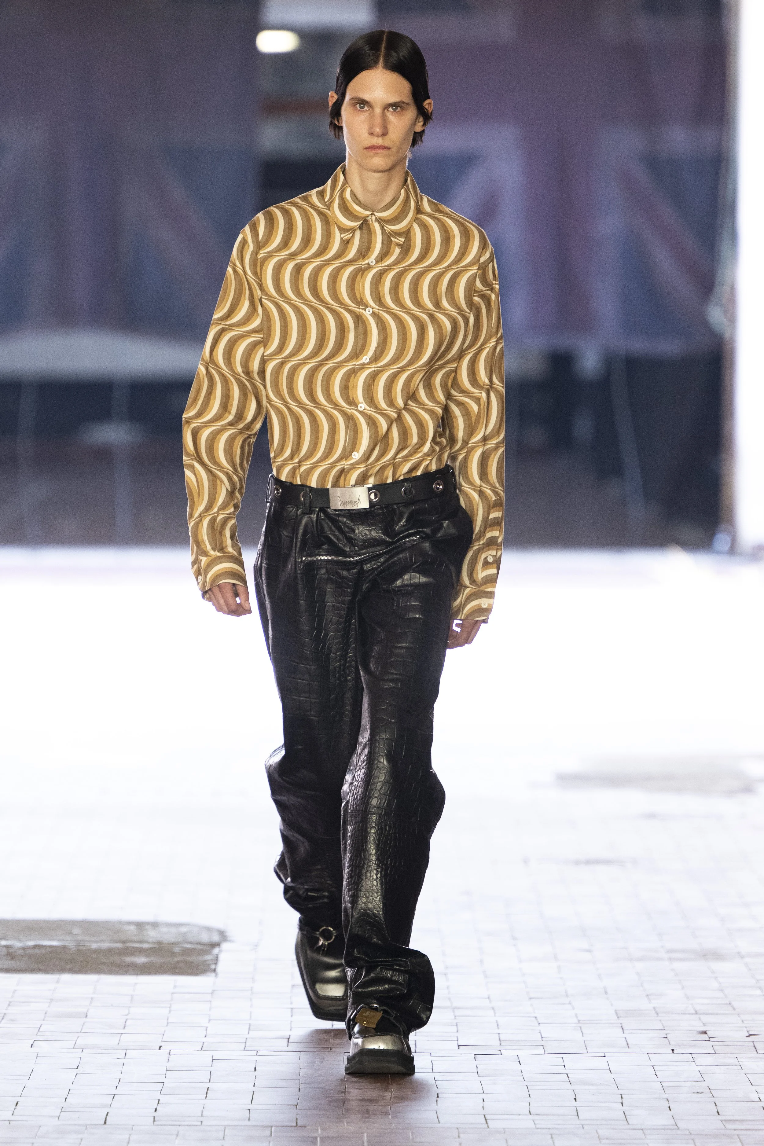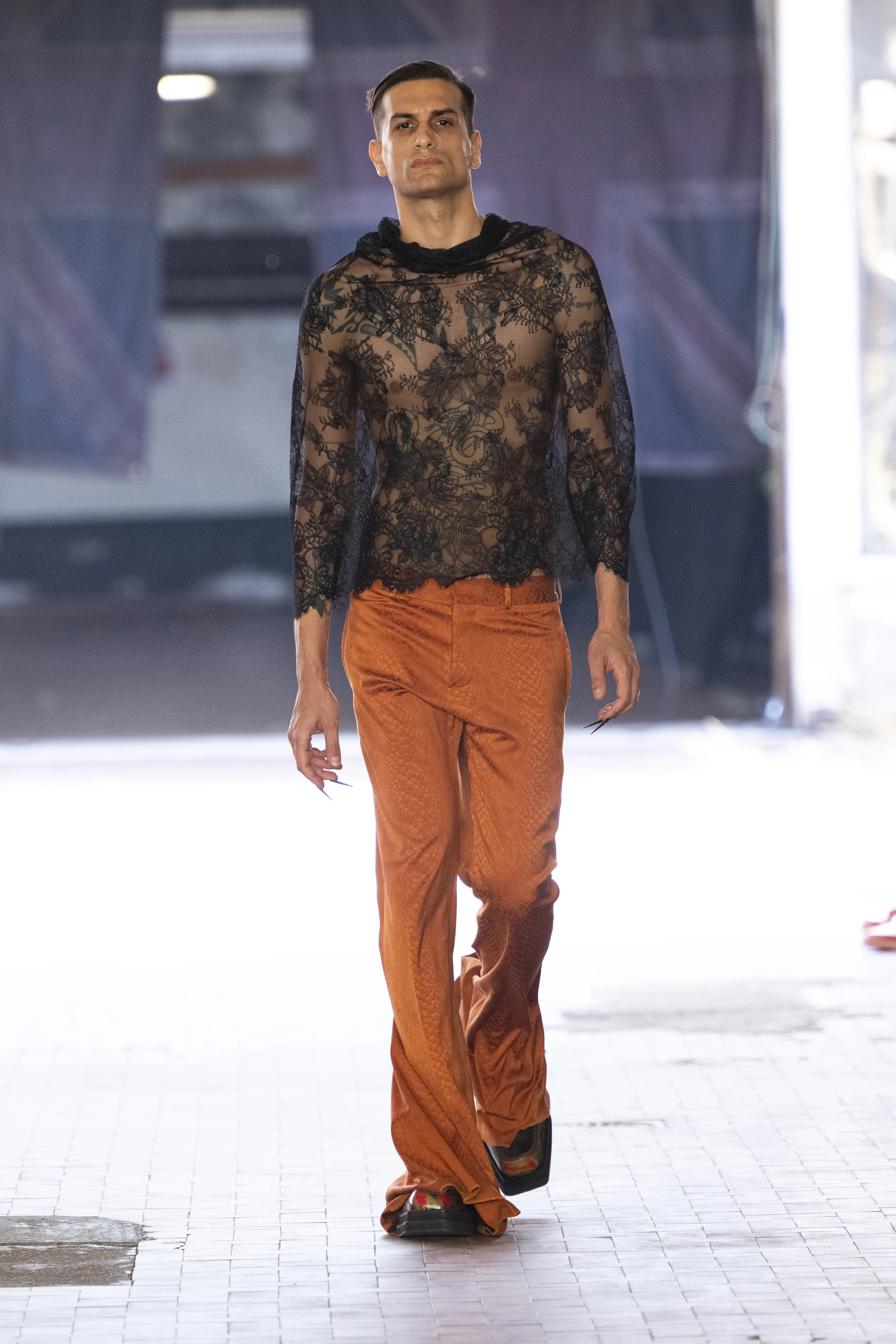 In the act of recognising your own vices, restriction in leather jackets and coats opened up to make space for your own light coming in, ushering a new understanding of yourself, taking a step towards seeing a new reflection upon your own experience. Thorns, poking out from belt loops on relaxed trousers close the circle by bringing awareness to each of our own actions, instead of scars, carrying them as reminders of strength, ushered in by JORDANLUCA’s bravery to speak upon the power of inner dialogue and honesty - and the power to heal through forgiveness of one’s self.