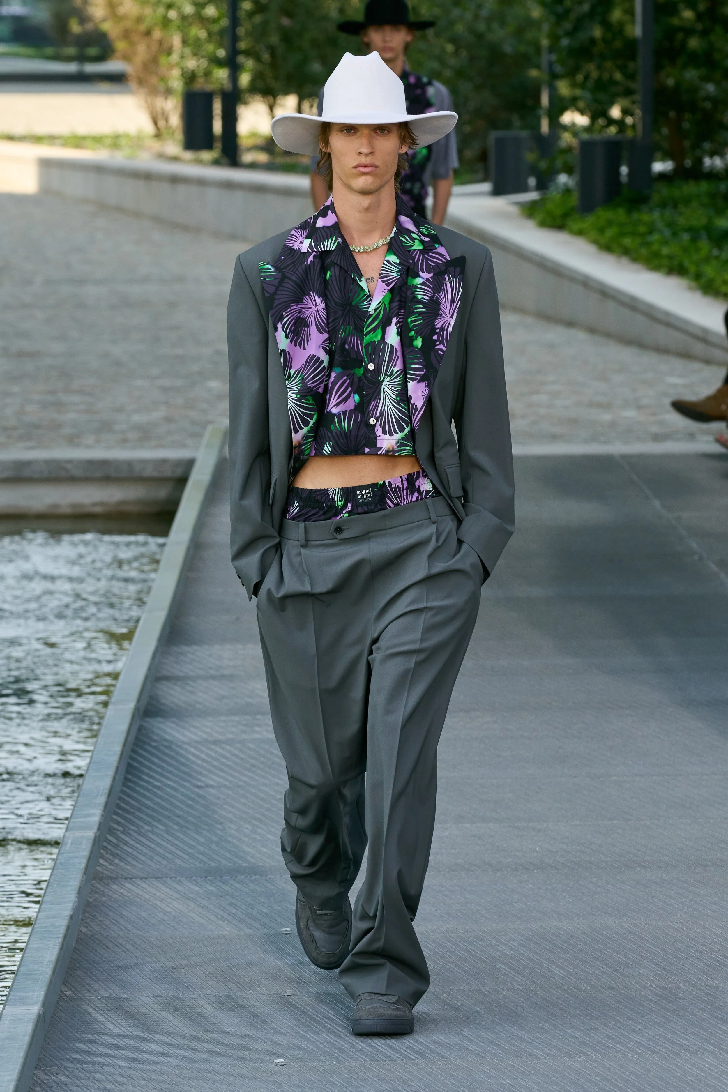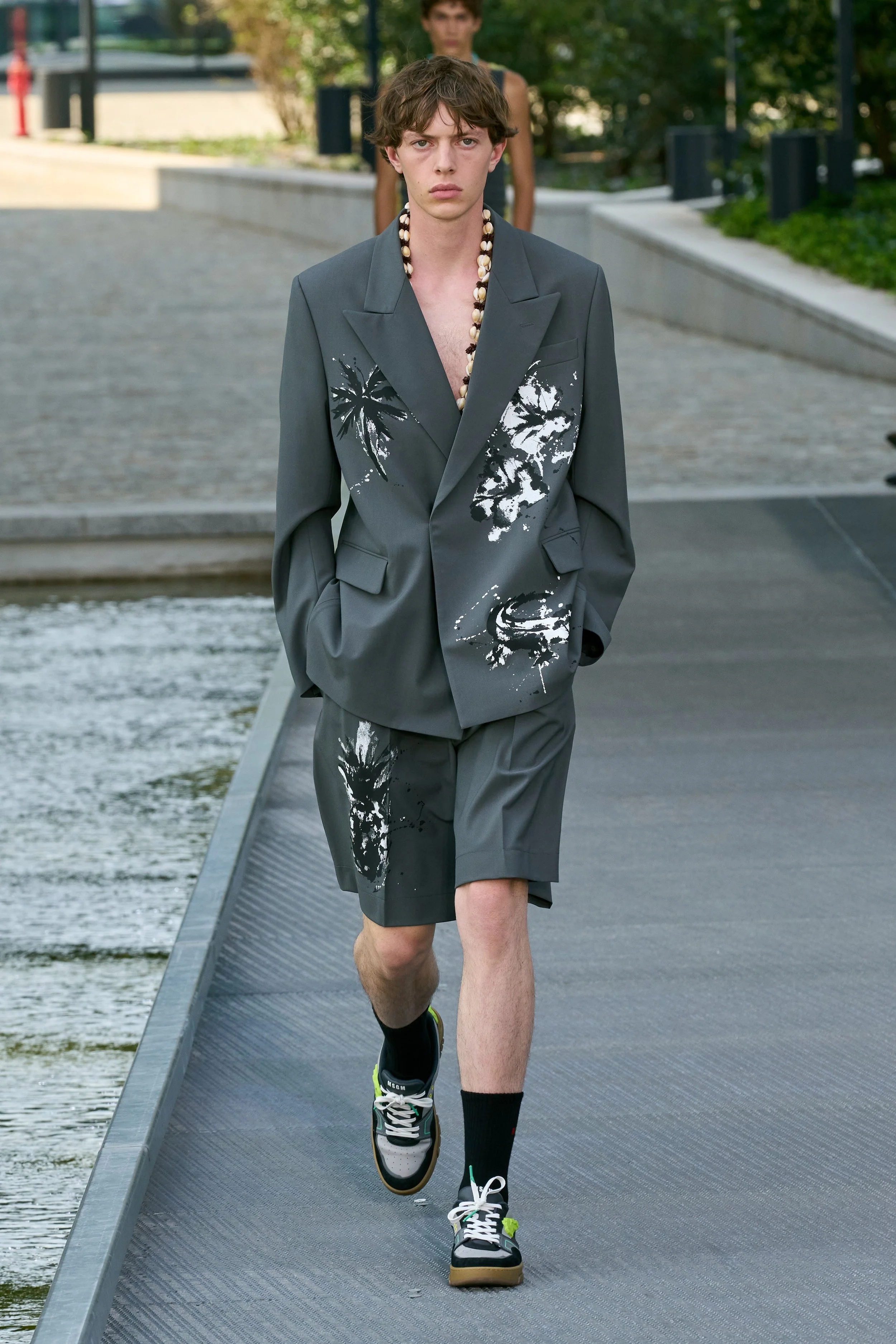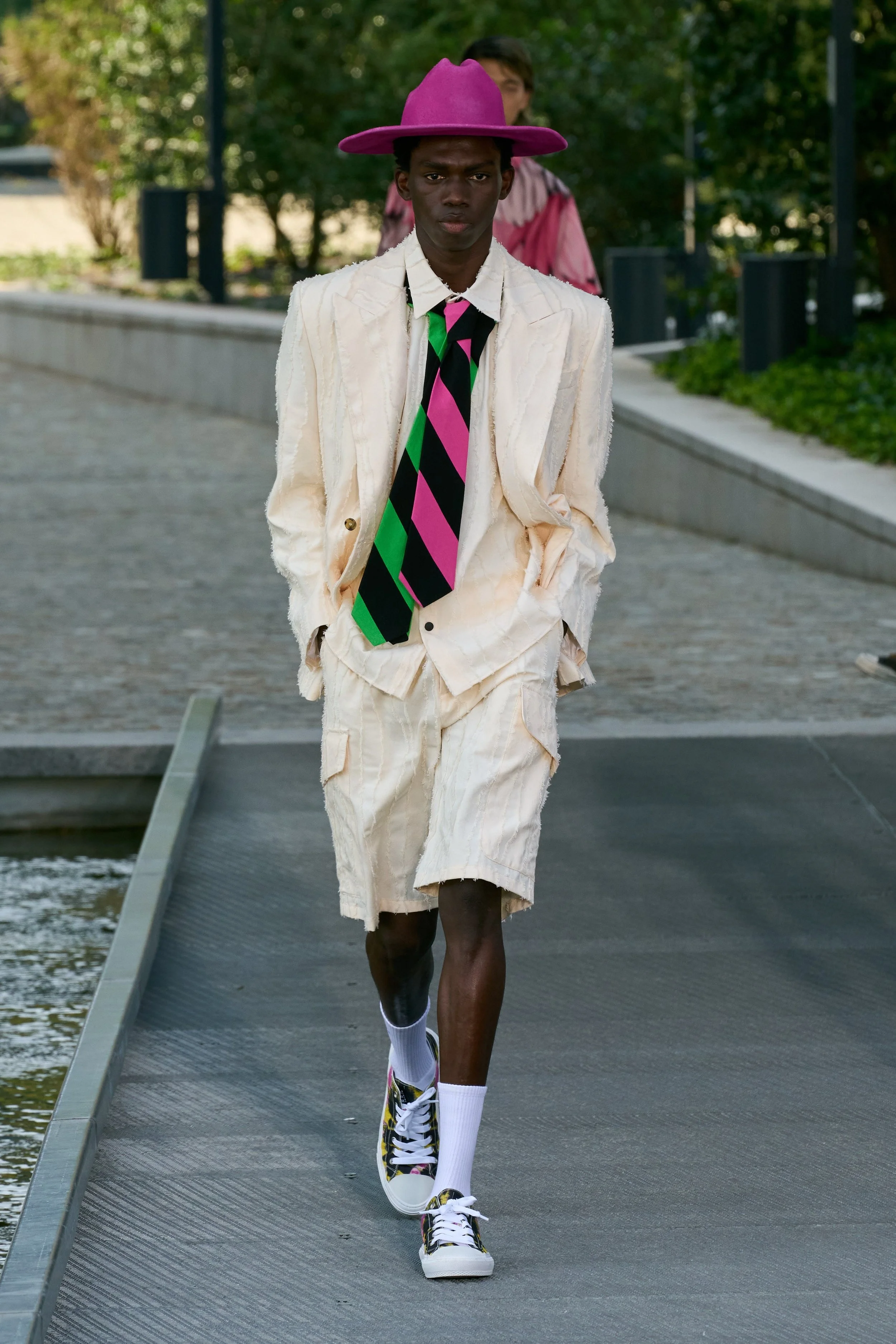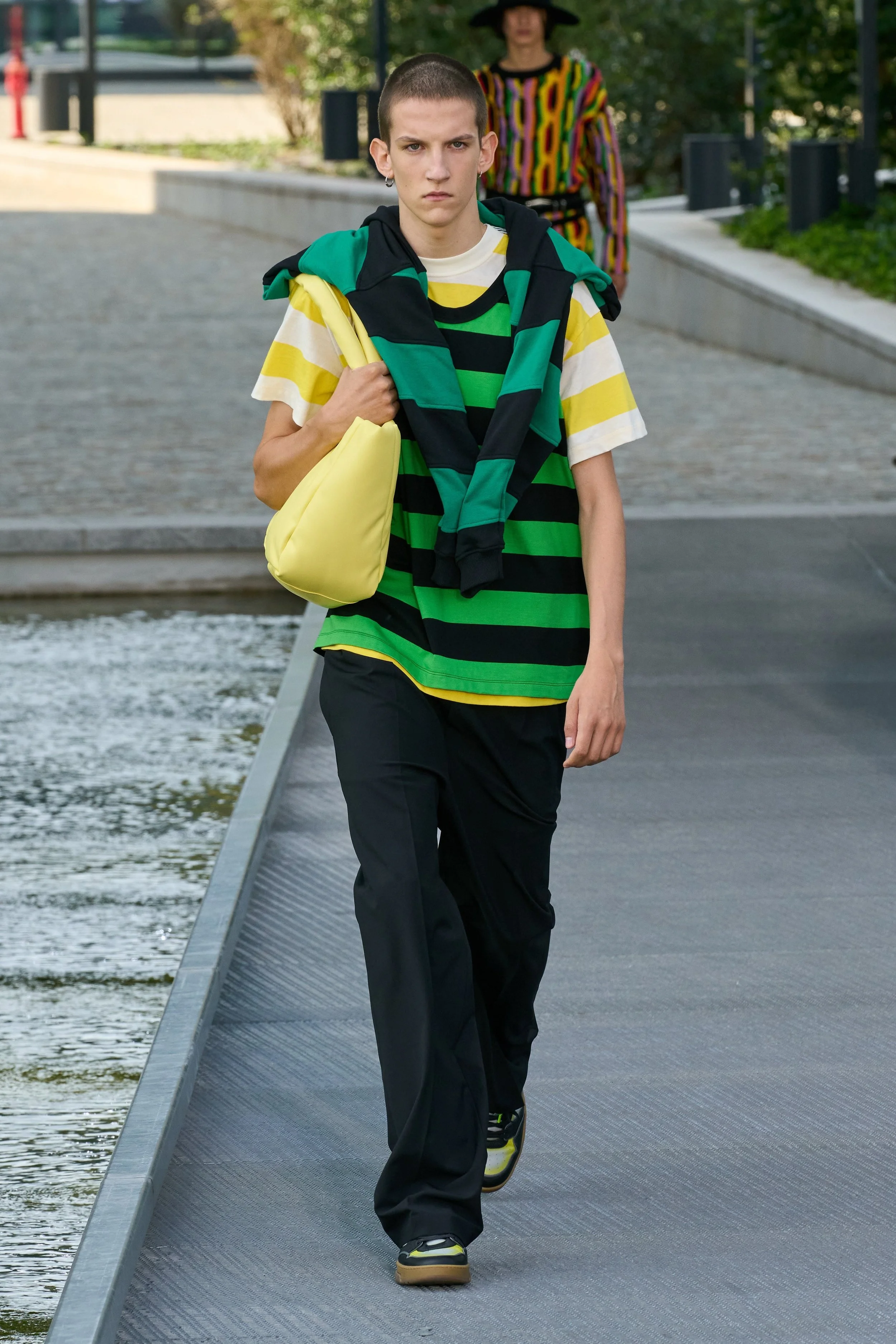 Stepping onto the concrete courtyard of Milan’s newest neighbourhood, models walked across the reflective water basin, out into the open to the mischievous soundtrack of HBO’s brilliantly produced tv series White Lotus, which can also be seen as a parallel to the MSGM man - calm, collected and full of bliss and joy, with a dark and mysterious puzzling side, urging you to dig deeper.
