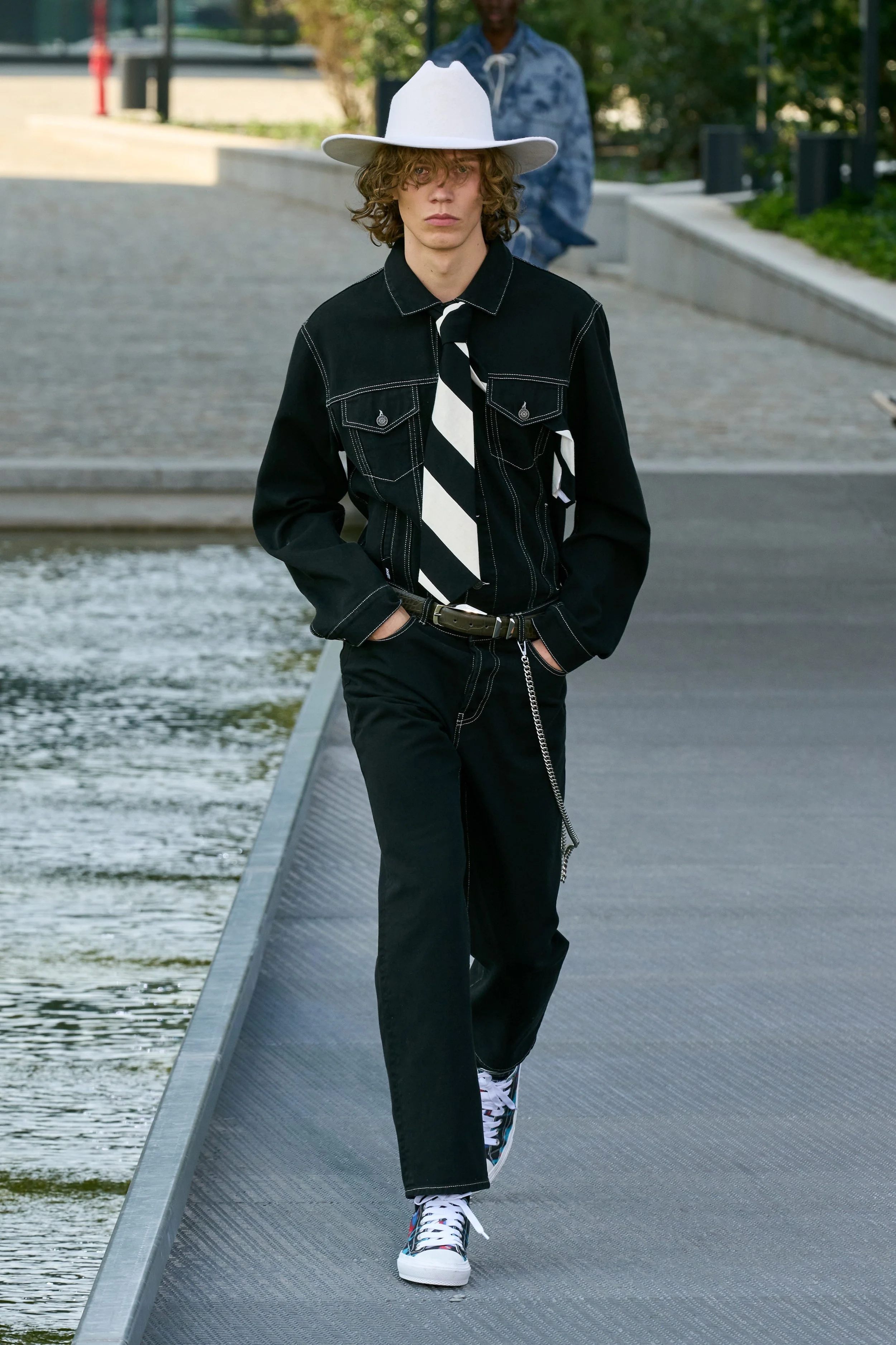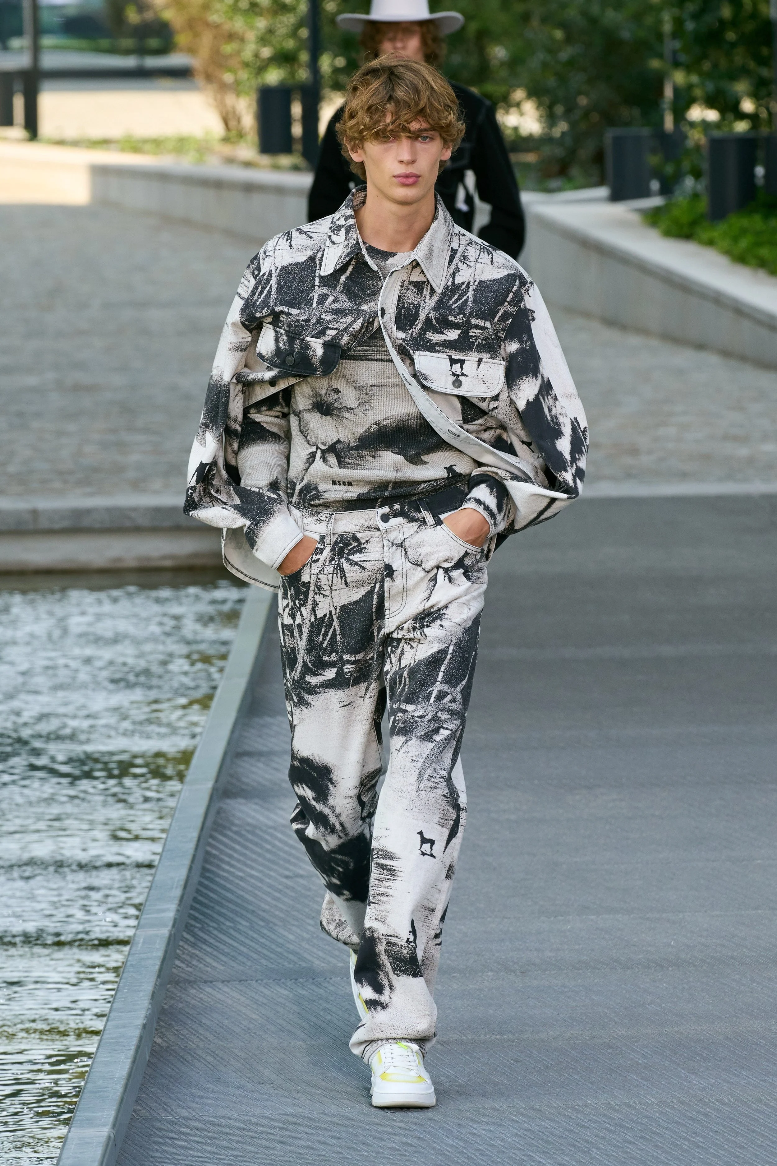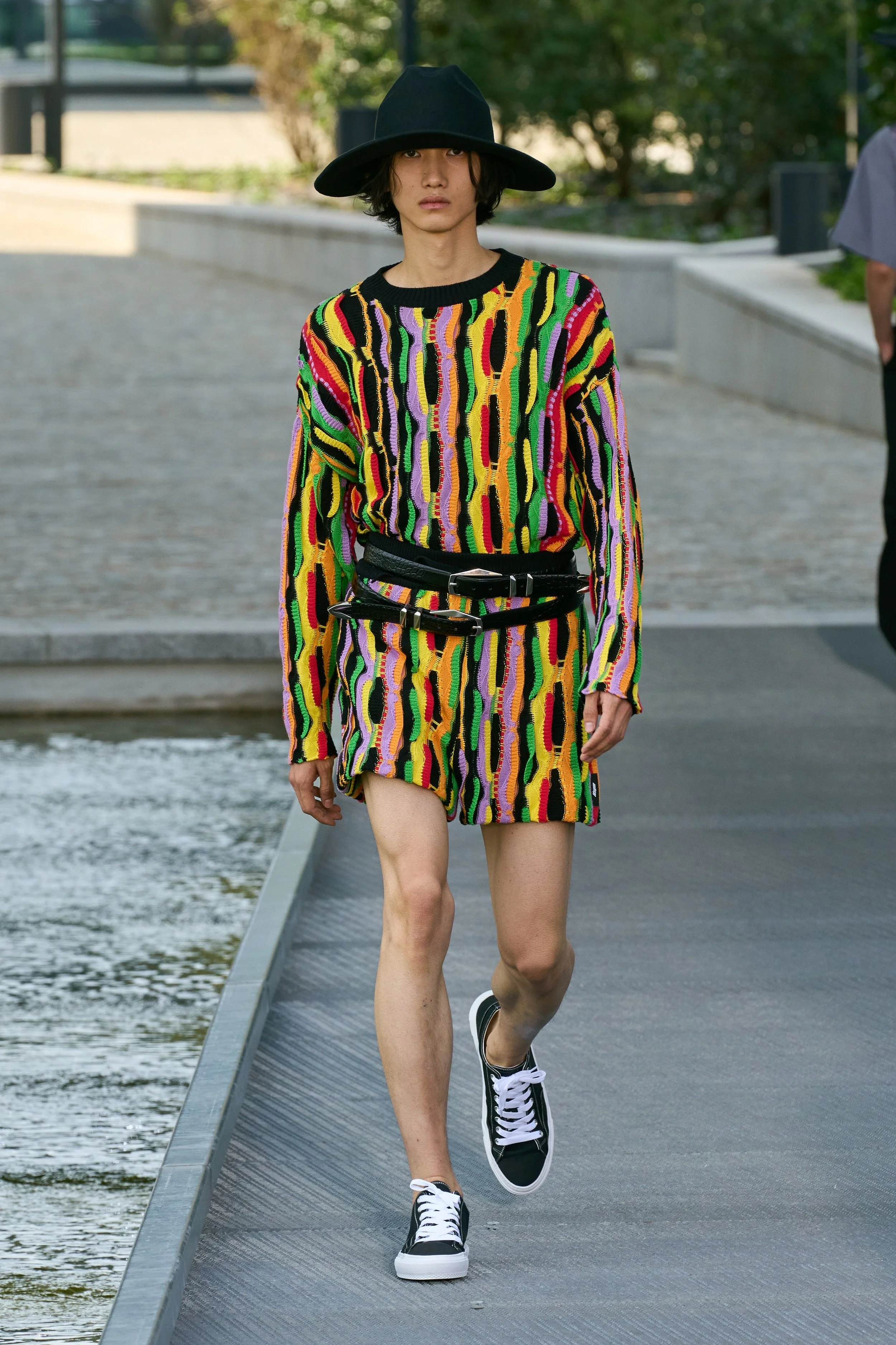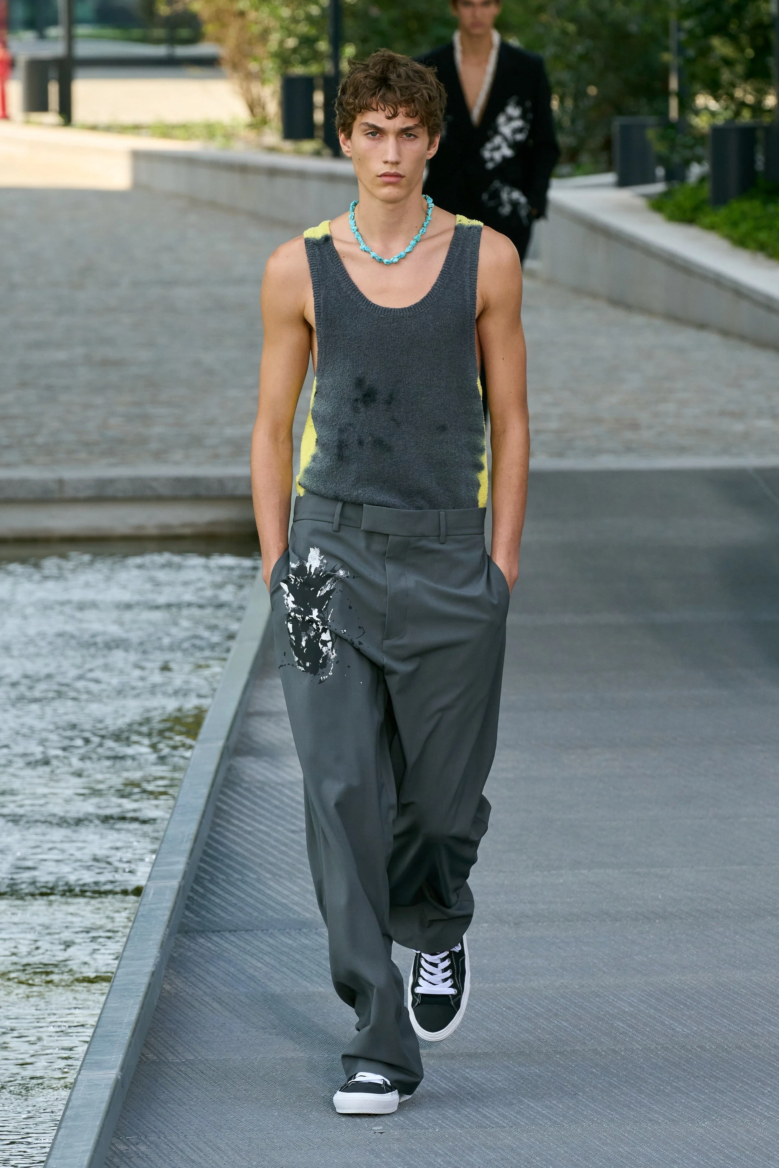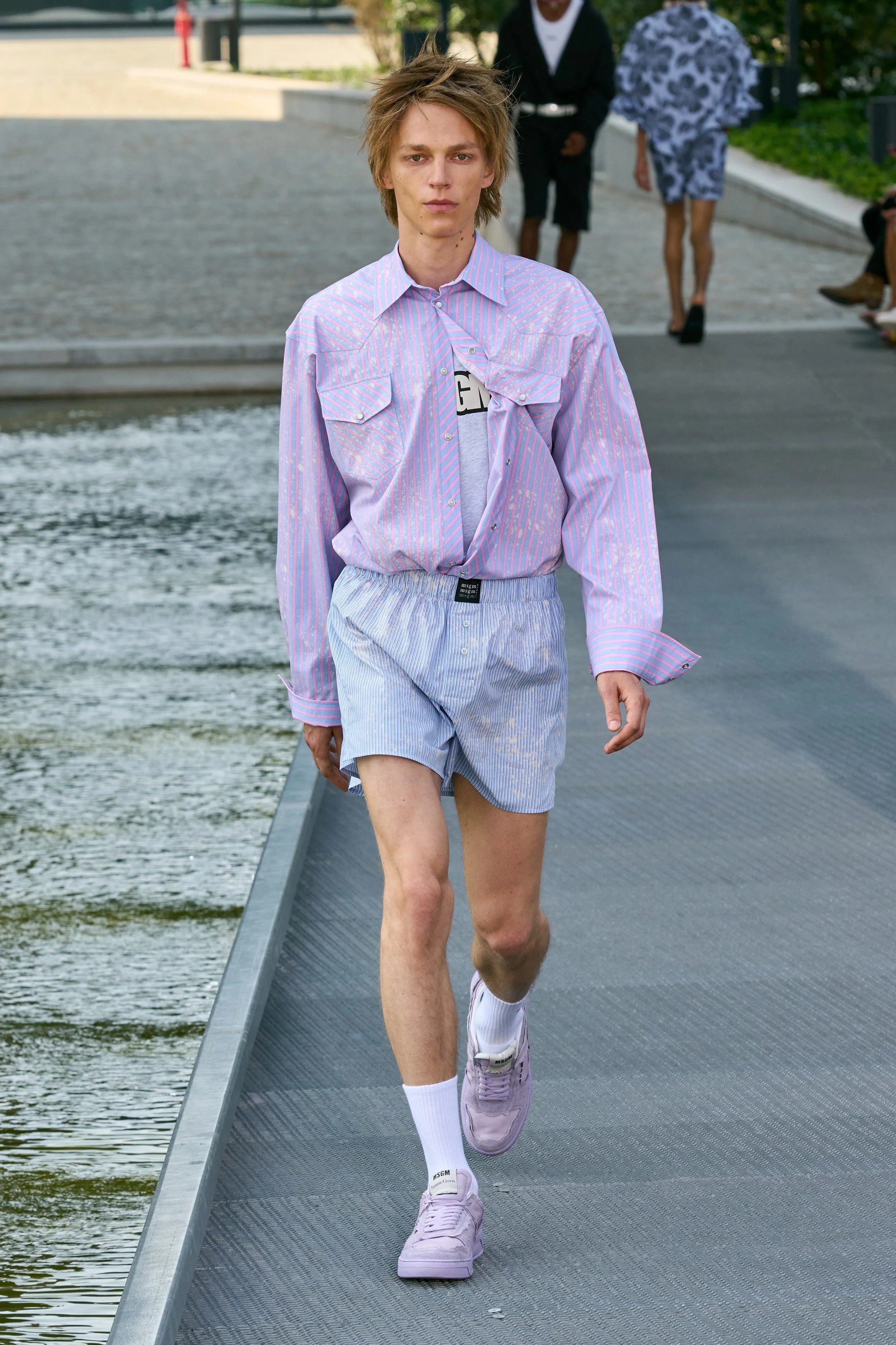 Stepping onto the concrete courtyard of Milan’s newest neighbourhood, models walked across the reflective water basin, out into the open to the mischievous soundtrack of HBO’s brilliantly produced tv series White Lotus, which can also be seen as a parallel to the MSGM man - calm, collected and full of bliss and joy, with a dark and mysterious puzzling side, urging you to dig deeper.