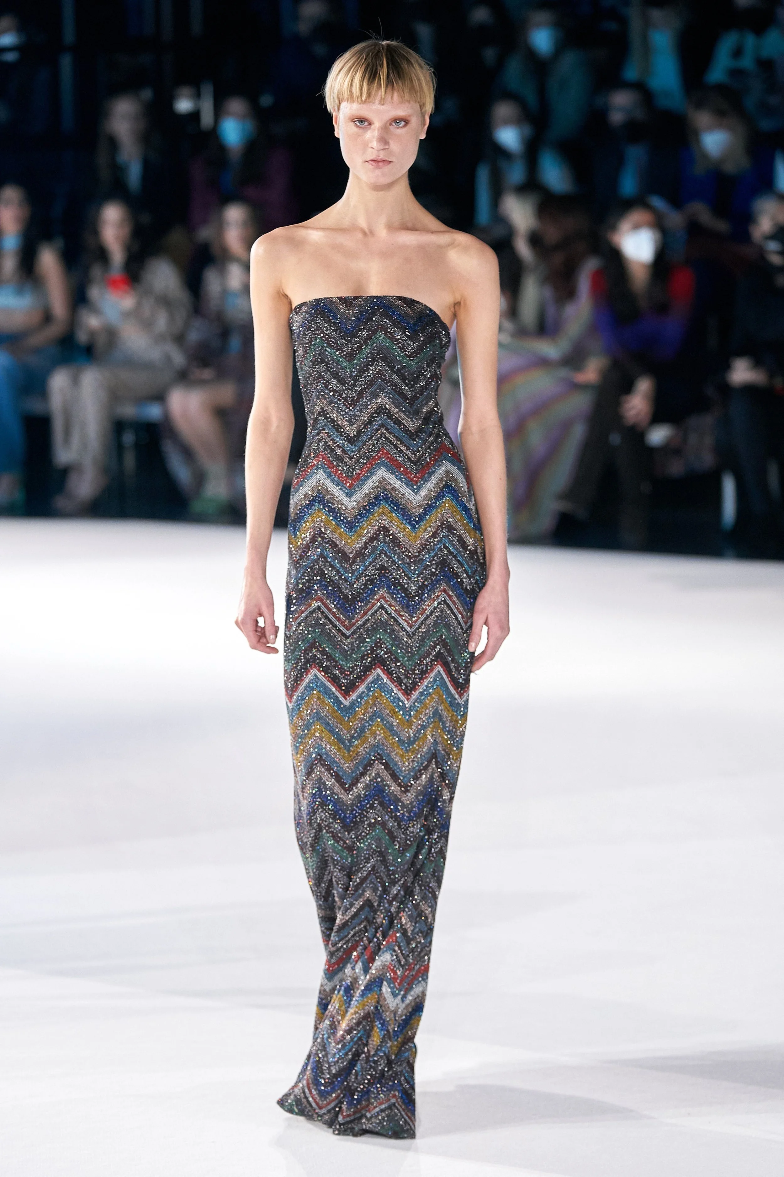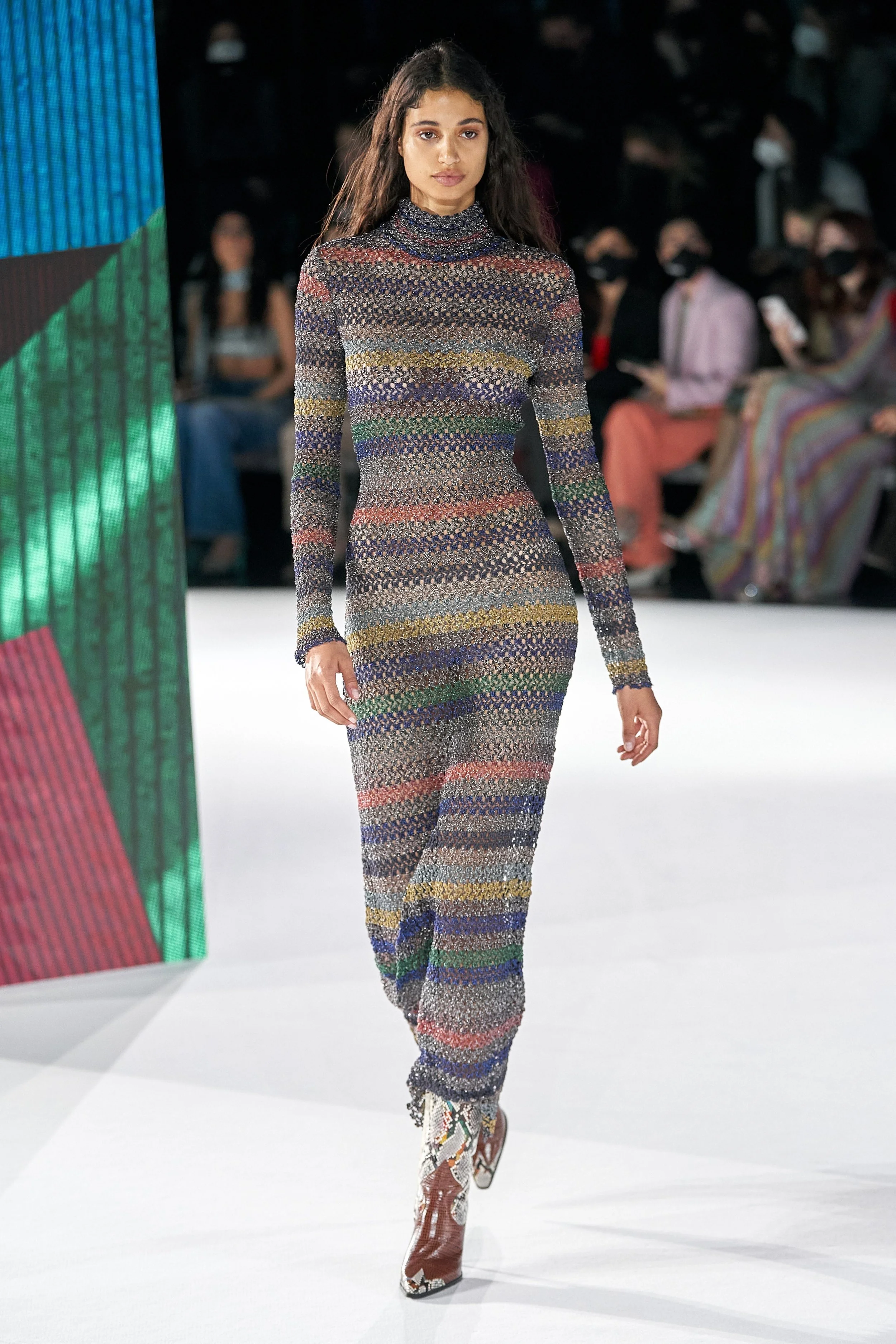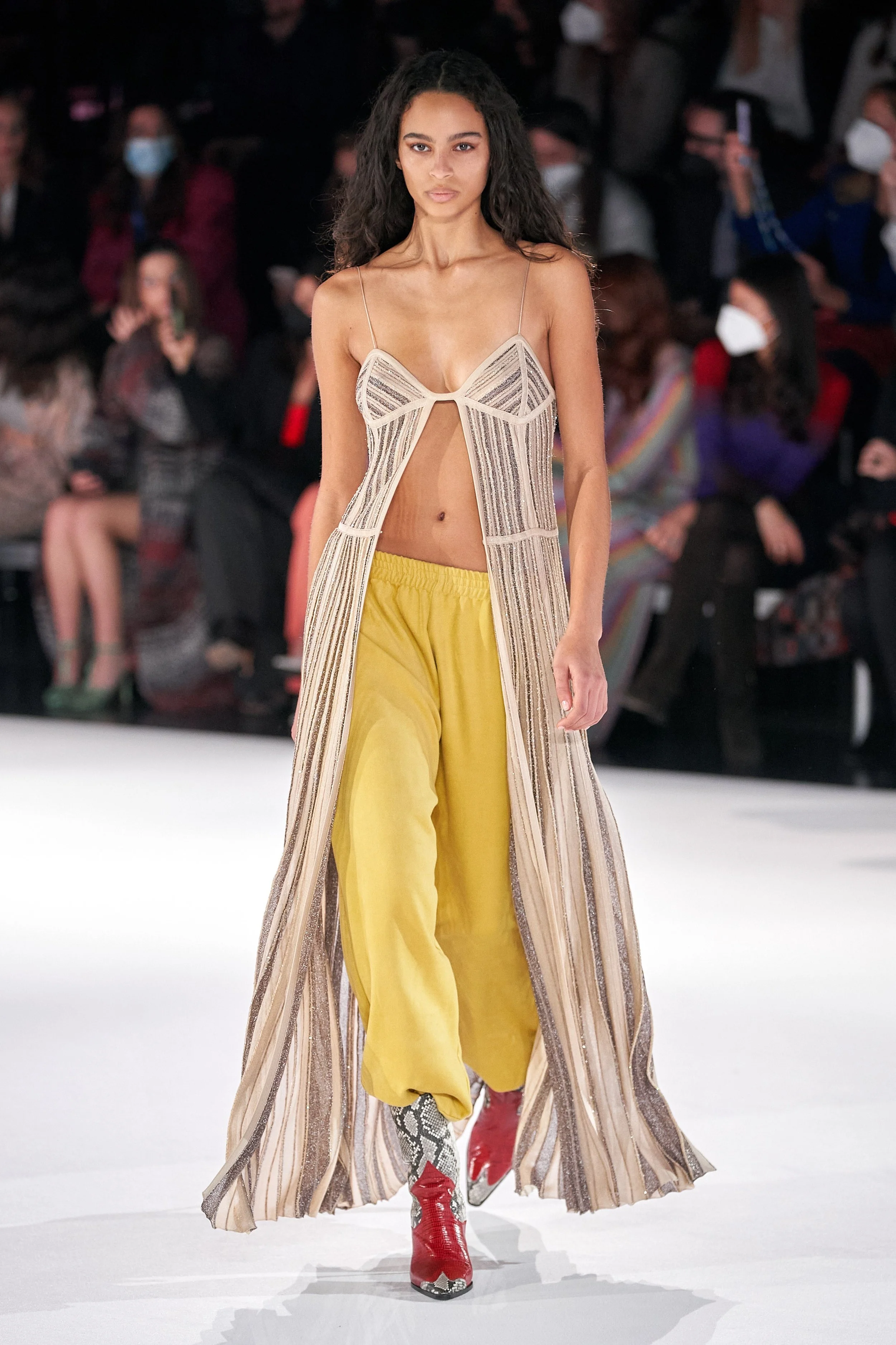 Nowadays, what is private, what is public, and where do we stand amongst all of that? This was the conveyed message behind Missoni’s show on Friday, questioning dress codes through loungewear such as bathrobes, brought onto evening wear in a sequined iteration that puts it all out on the table for discussion.
