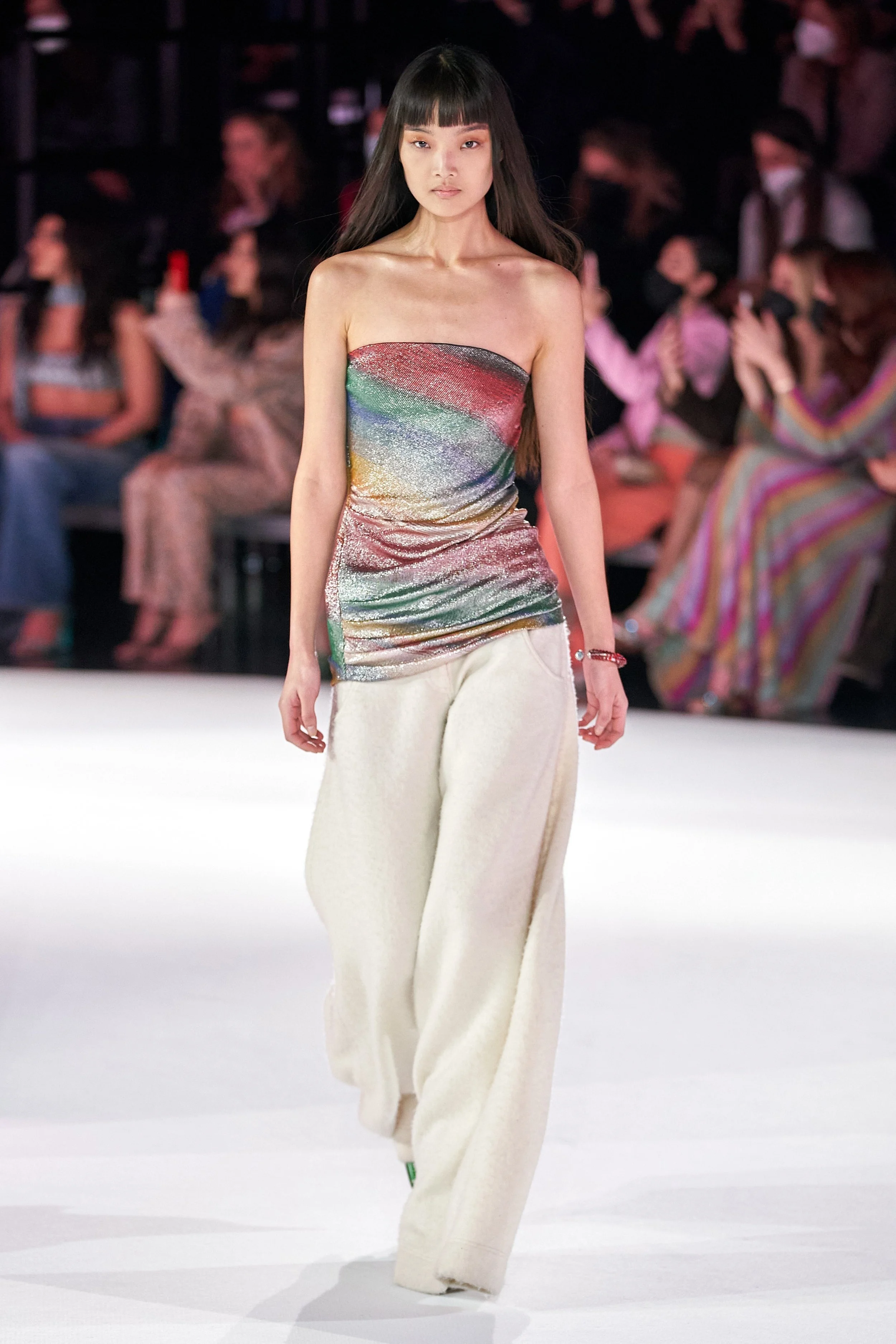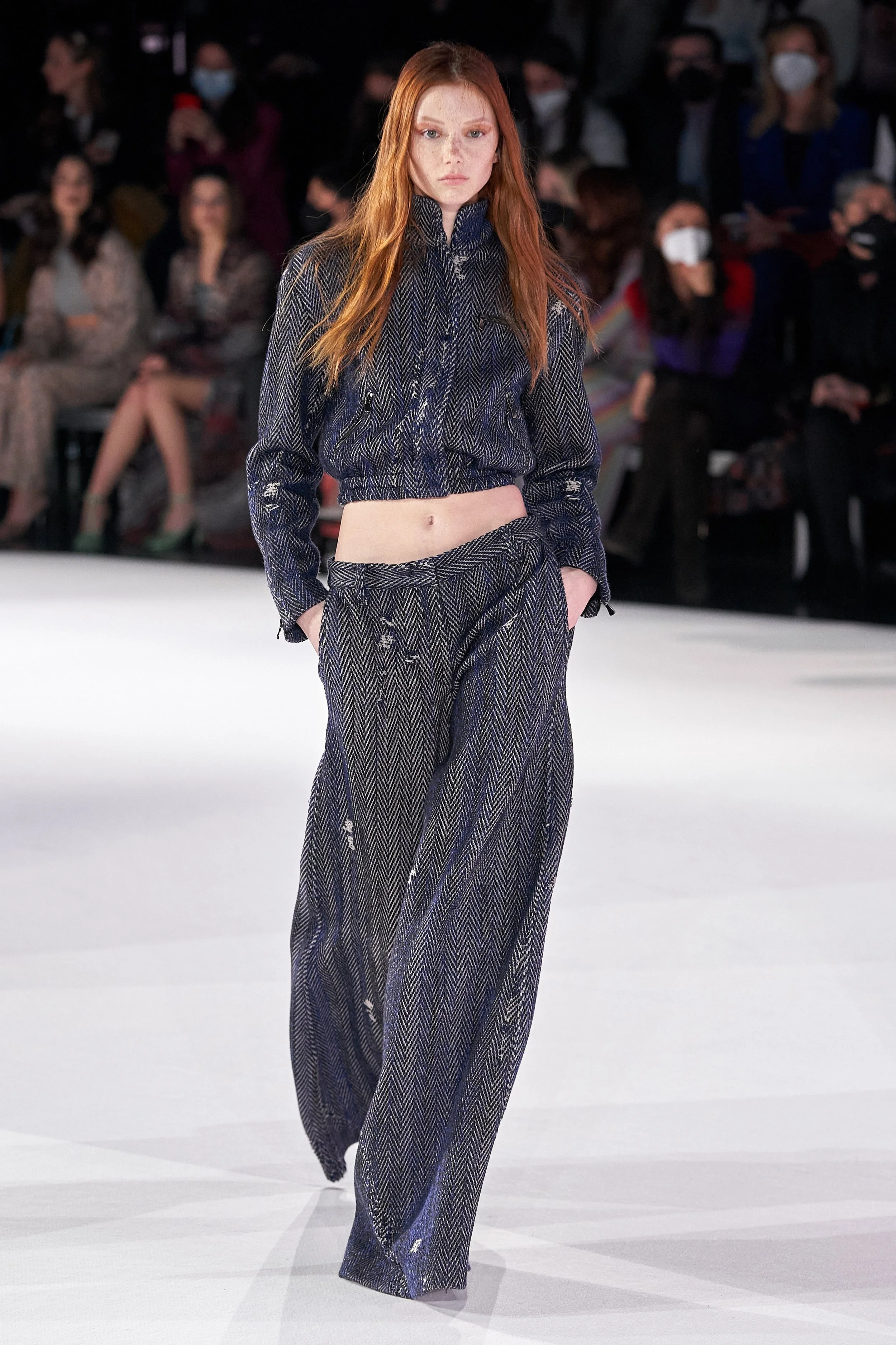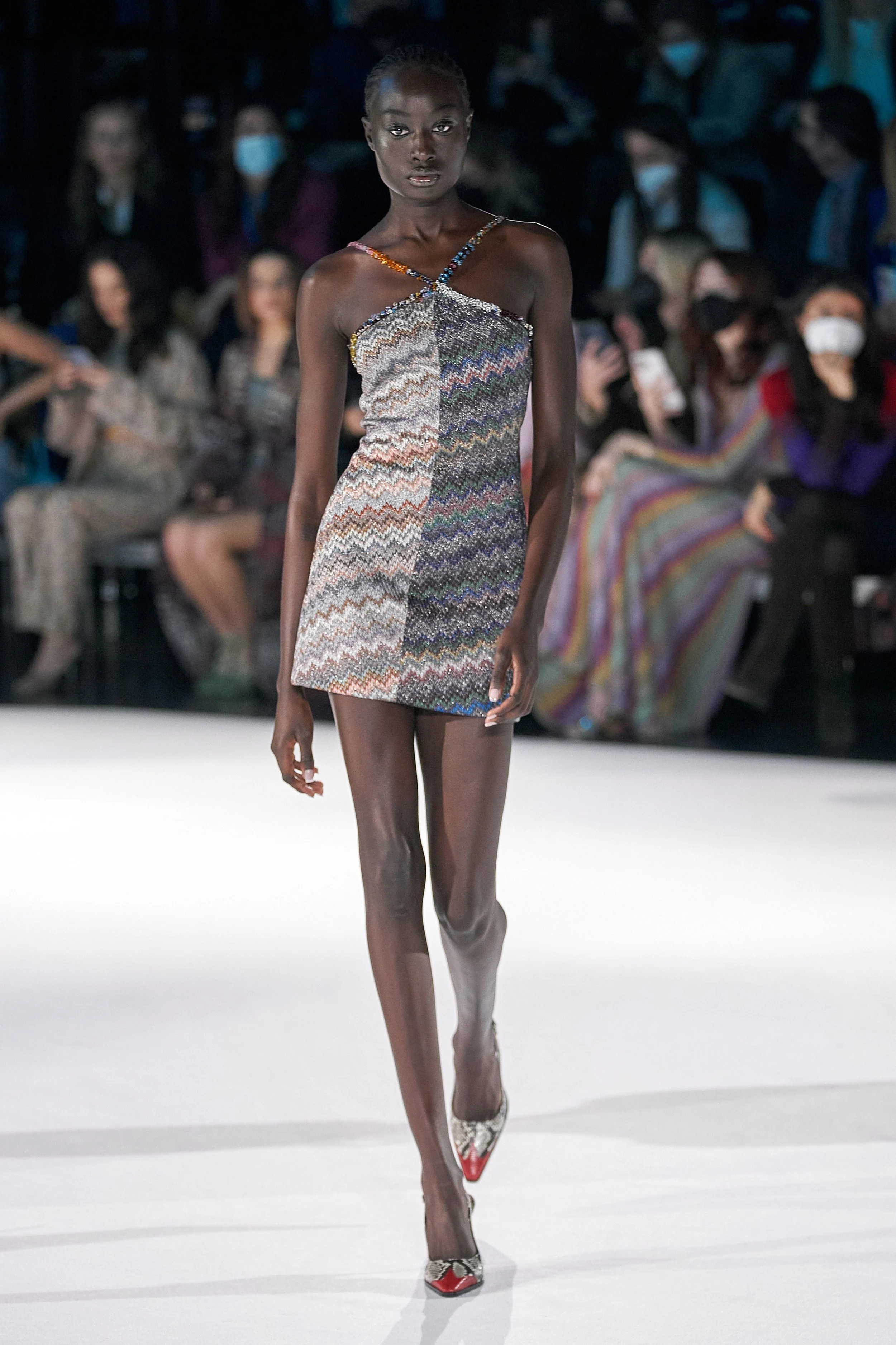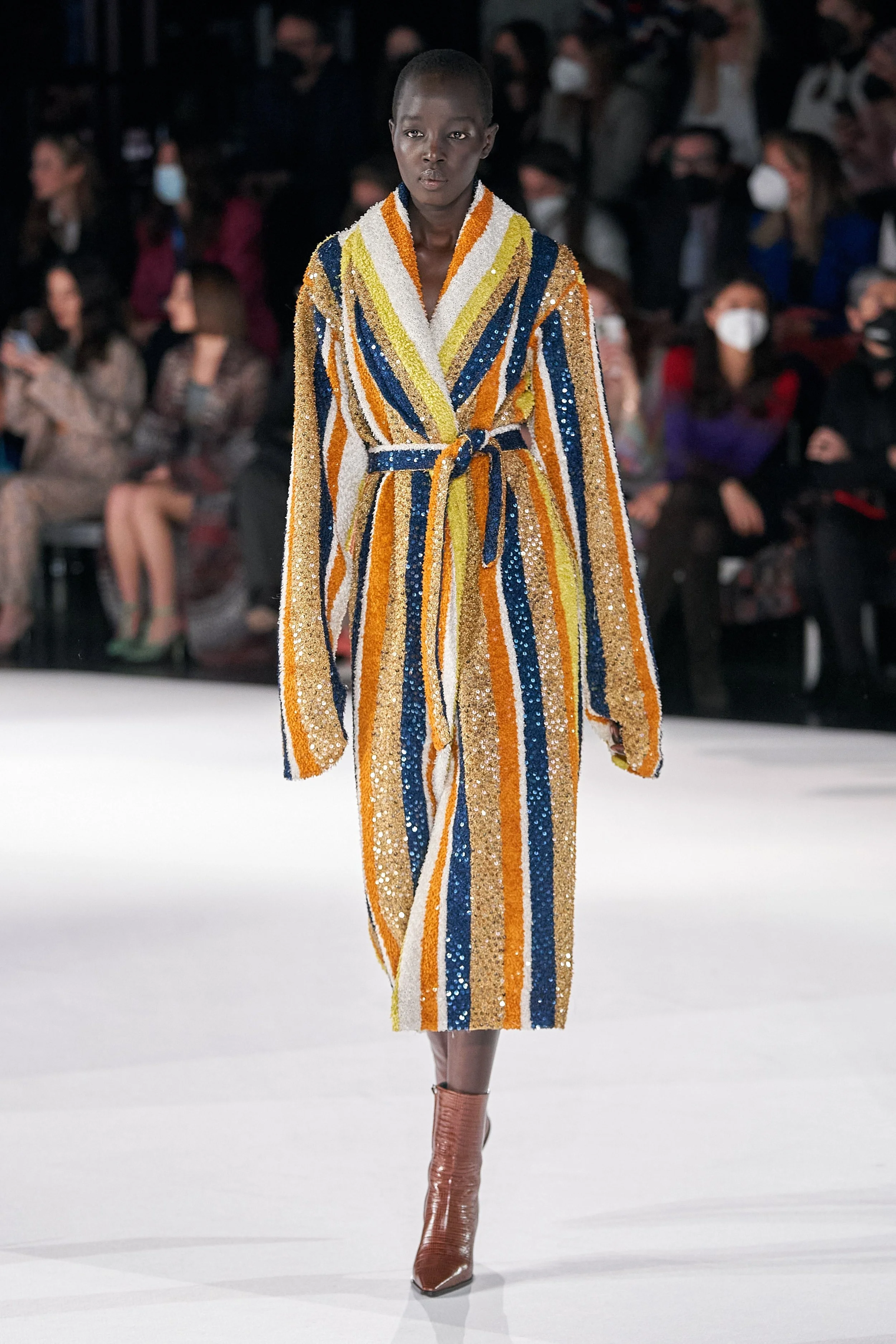 Nowadays, what is private, what is public, and where do we stand amongst all of that? This was the conveyed message behind Missoni’s show on Friday, questioning dress codes through loungewear such as bathrobes, brought onto evening wear in a sequined iteration that puts it all out on the table for discussion.