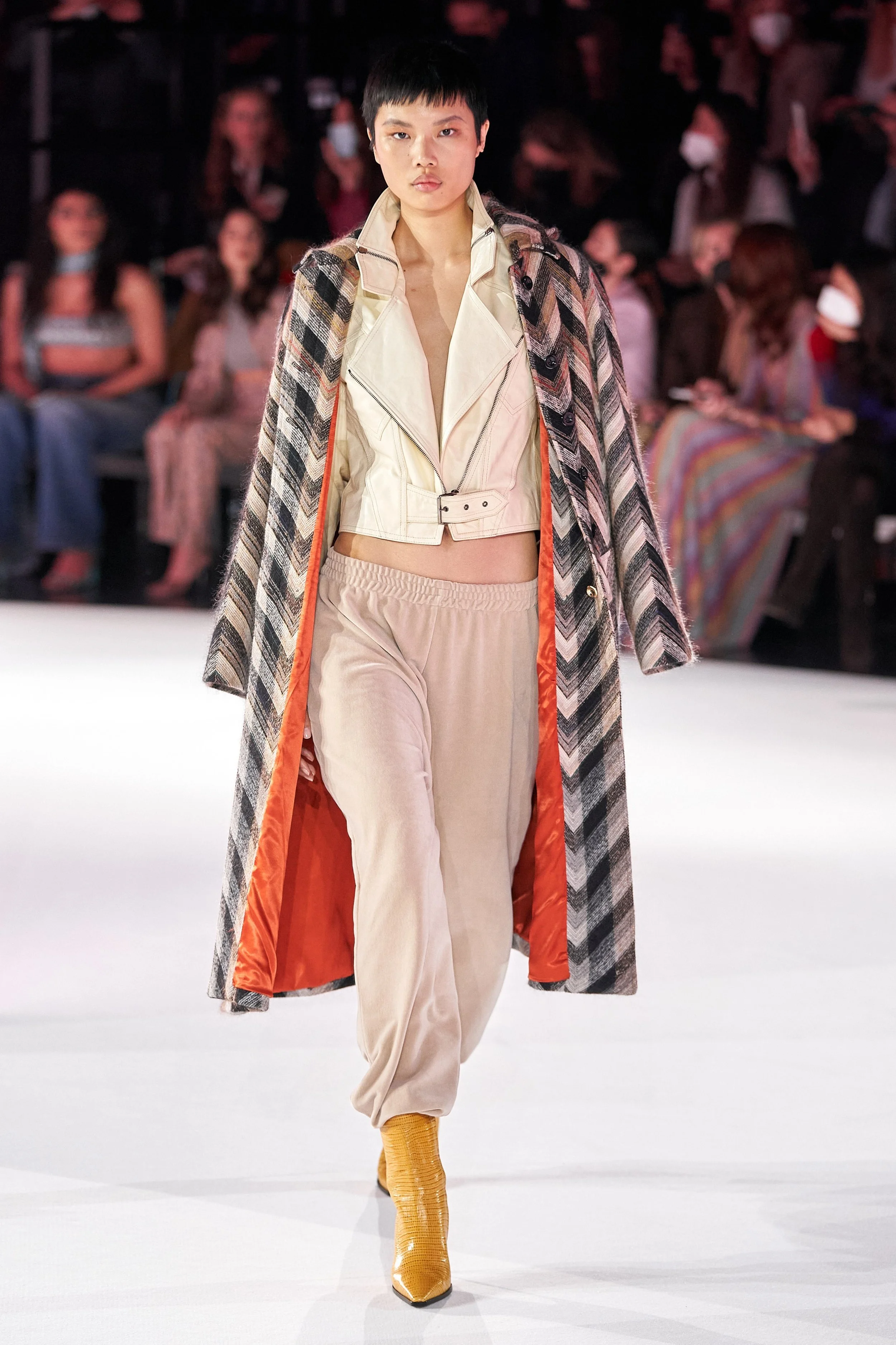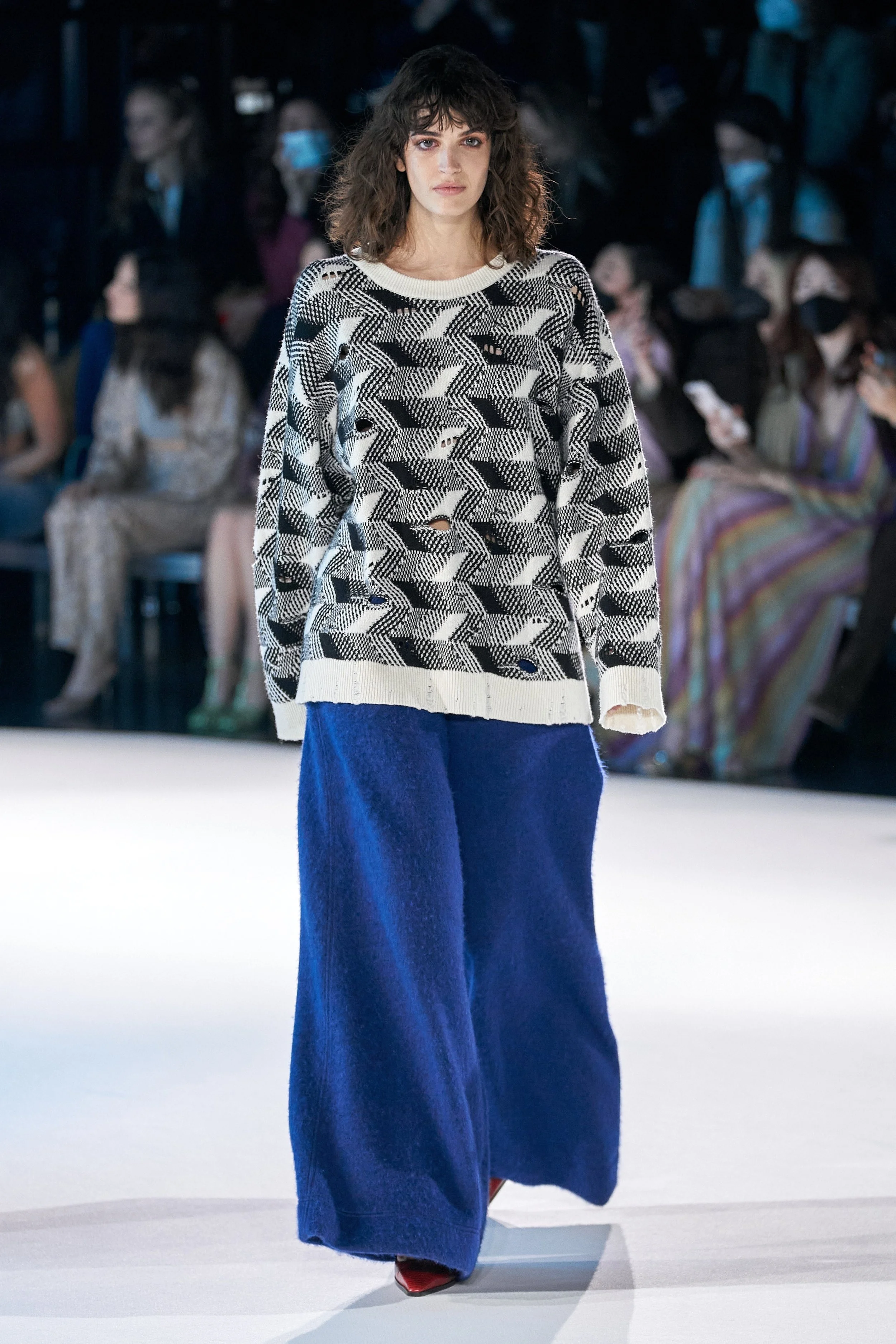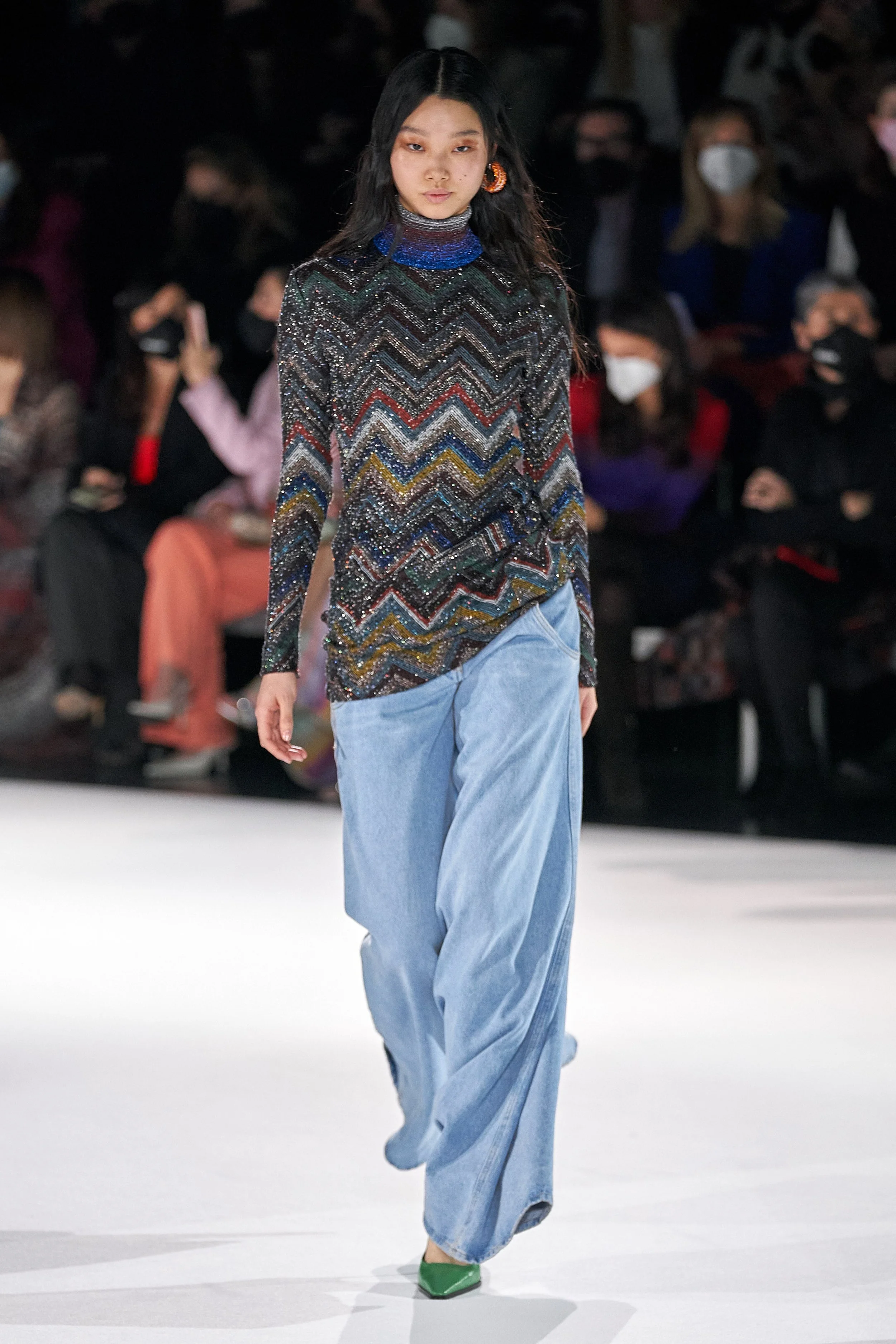 Caliri’s message was to take the old-school approach to a brand like MIssoni and take it on with young energy, especially playing with the all-loved sense of nostalgia currently – especially through the 90s super wide trousers, spanning across denim and loungewear. The mandatory chevron coat was present in a contemporary, oversized way by elongating the hems an extra inch, placing them on top of sleek leather biker jackets. Knitwear came in distressed finishes, by creating an atmosphere rejecting perfection much like Alberto Caliri’s personal approach to fashion which created its own universe of beautiful imperfection and spirit.
