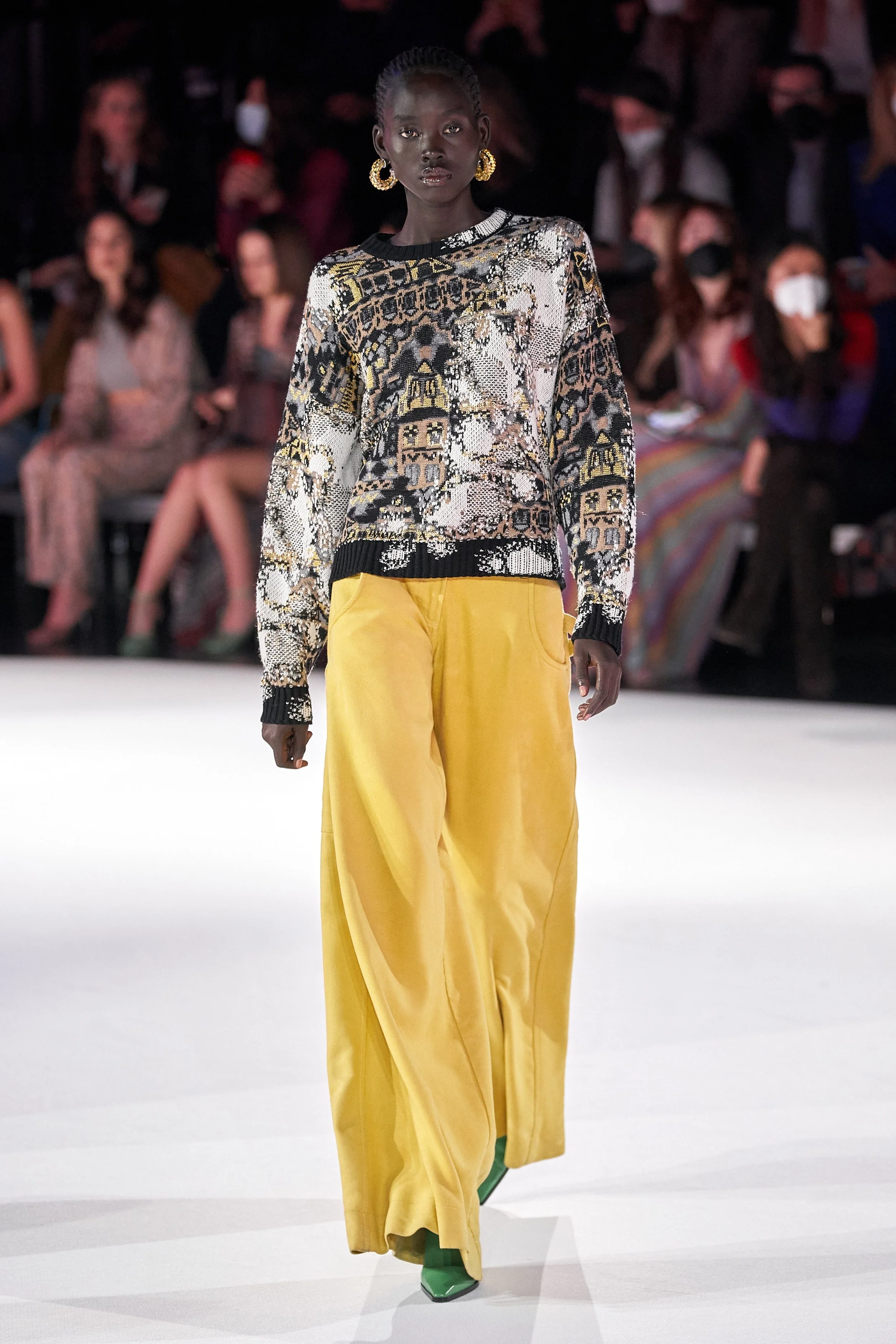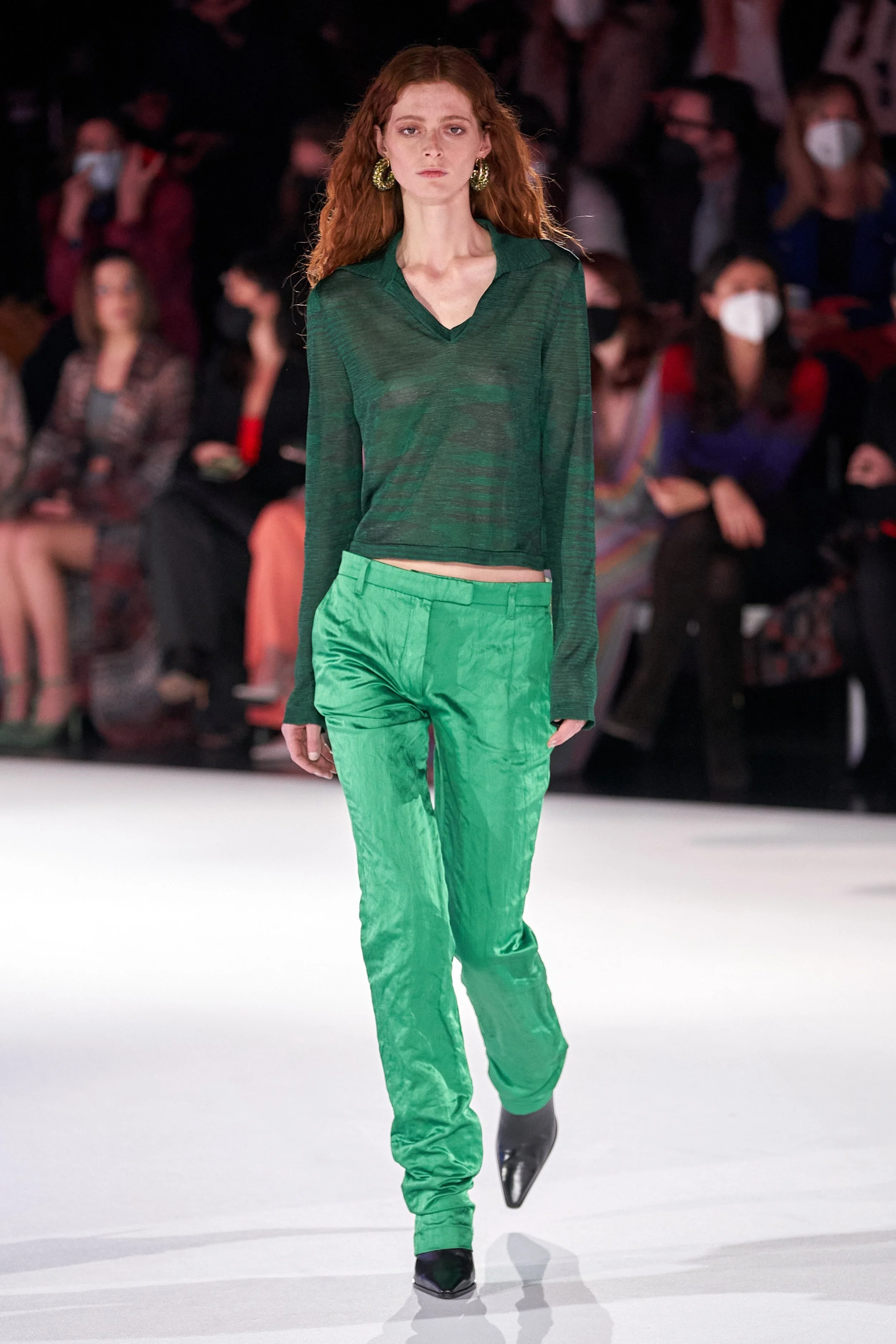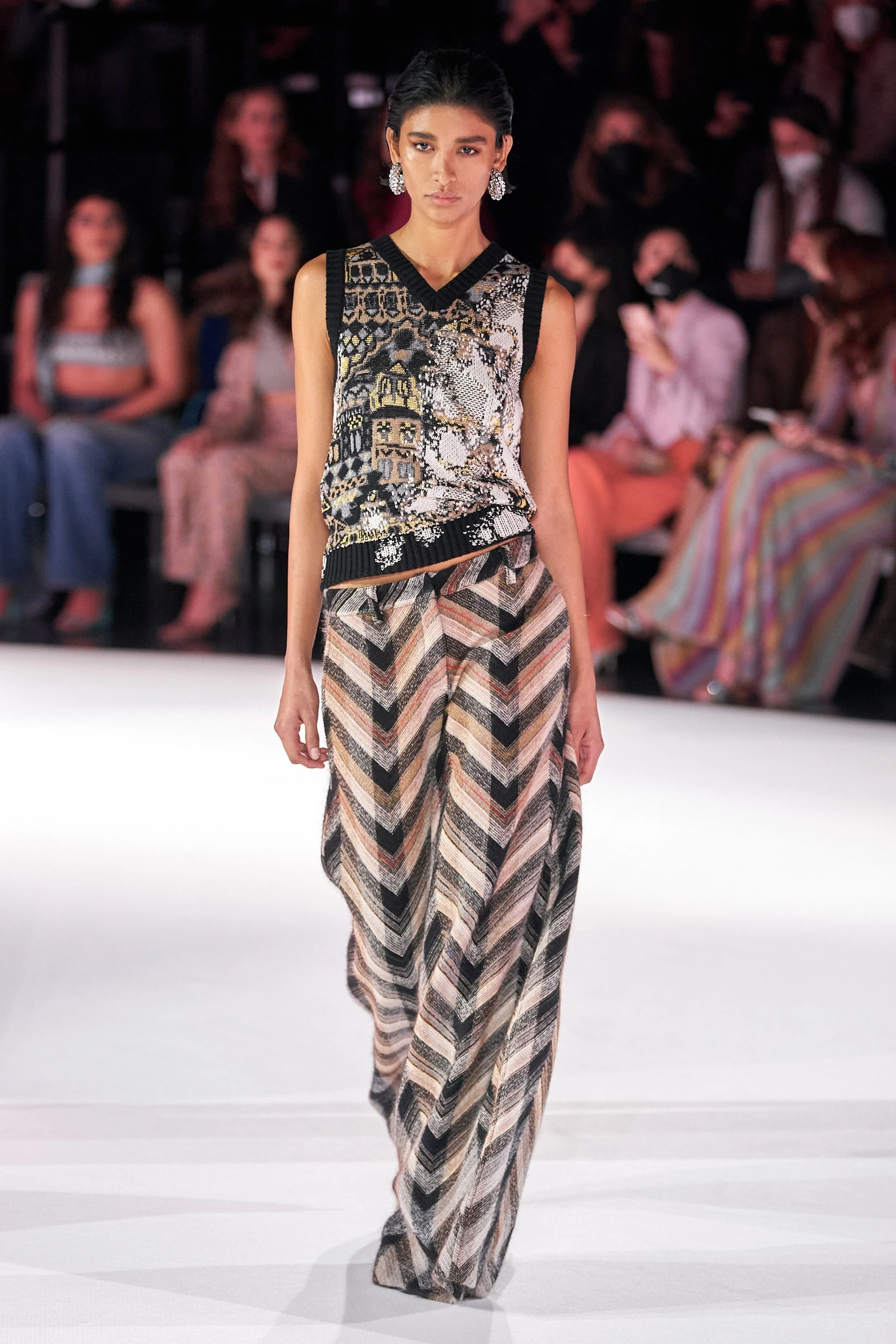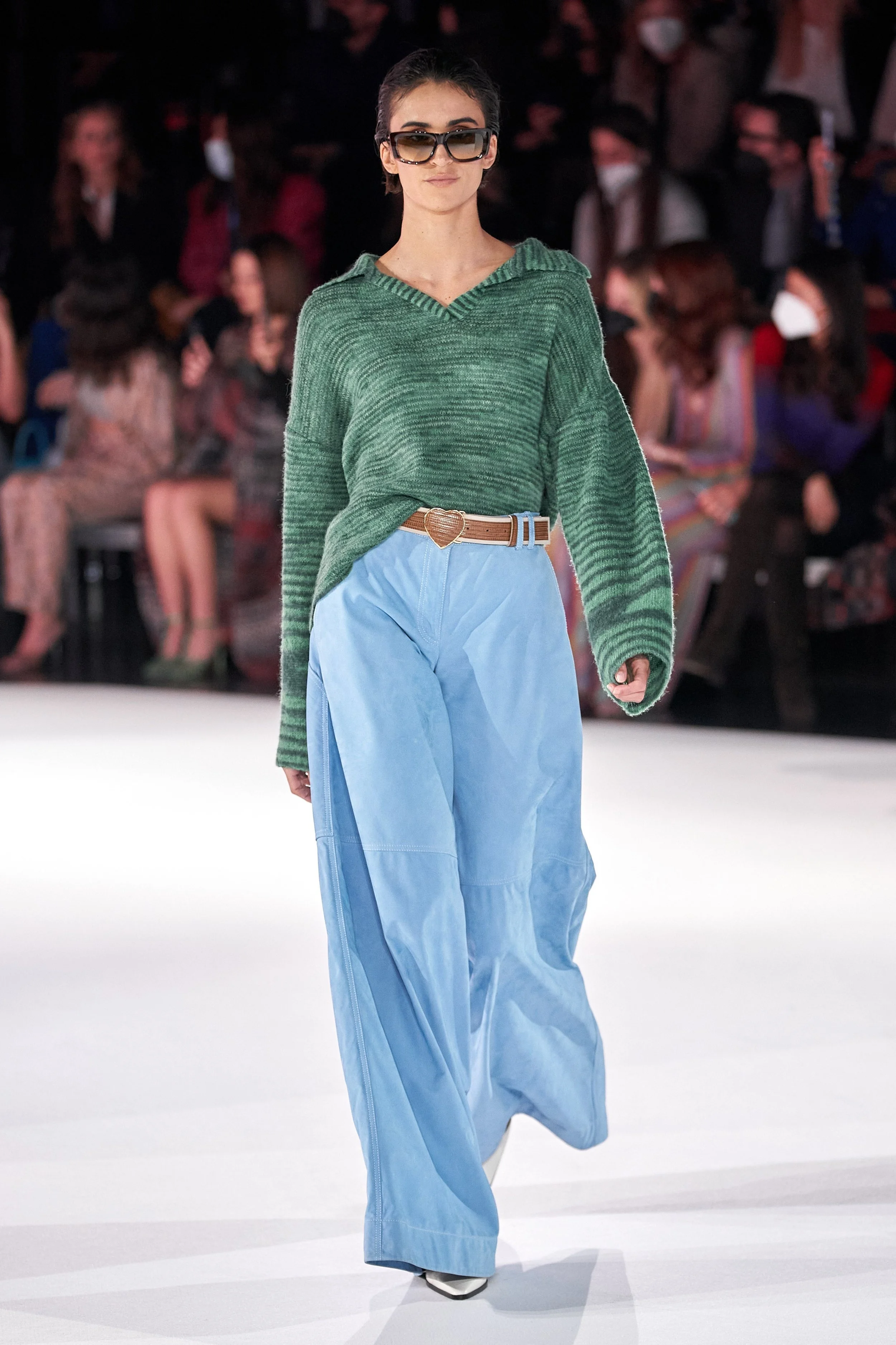 Caliri’s message was to take the old-school approach to a brand like MIssoni and take it on with young energy, especially playing with the all-loved sense of nostalgia currently – especially through the 90s super wide trousers, spanning across denim and loungewear. The mandatory chevron coat was present in a contemporary, oversized way by elongating the hems an extra inch, placing them on top of sleek leather biker jackets. Knitwear came in distressed finishes, by creating an atmosphere rejecting perfection much like Alberto Caliri’s personal approach to fashion which created its own universe of beautiful imperfection and spirit.