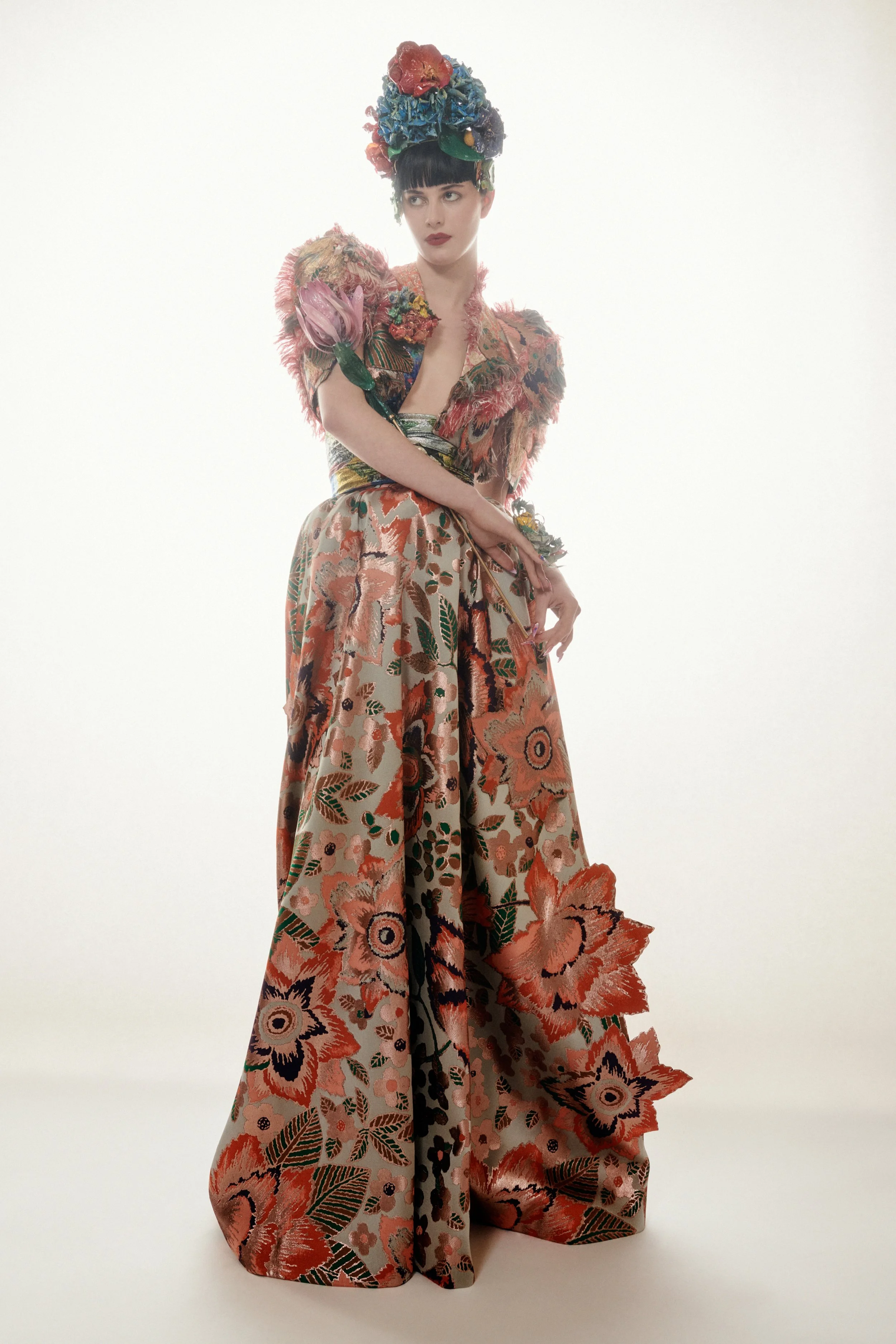Ronald Van Der Kemp repurposes discarded flowers and brooches for his new SS22 couture collection.