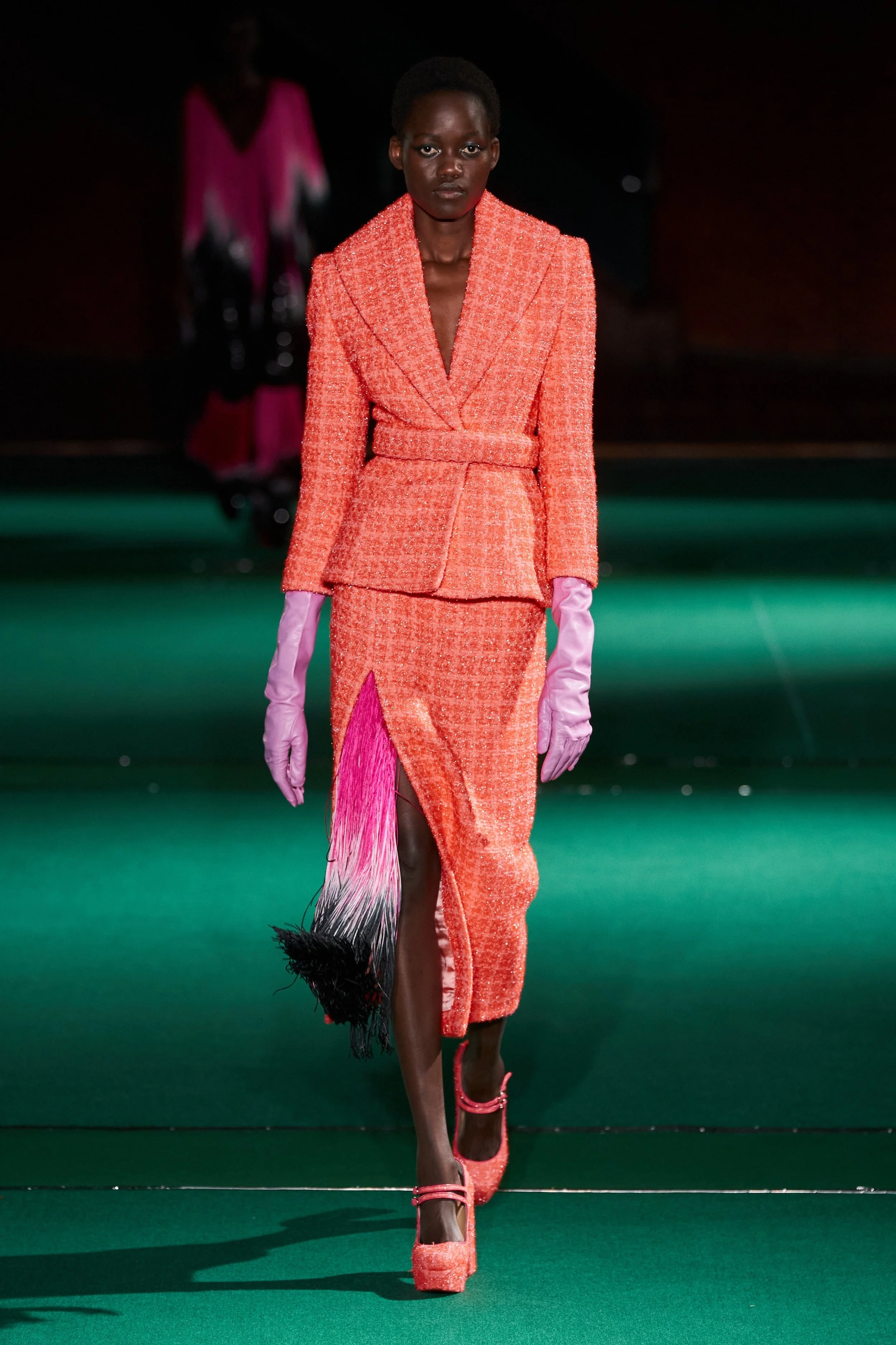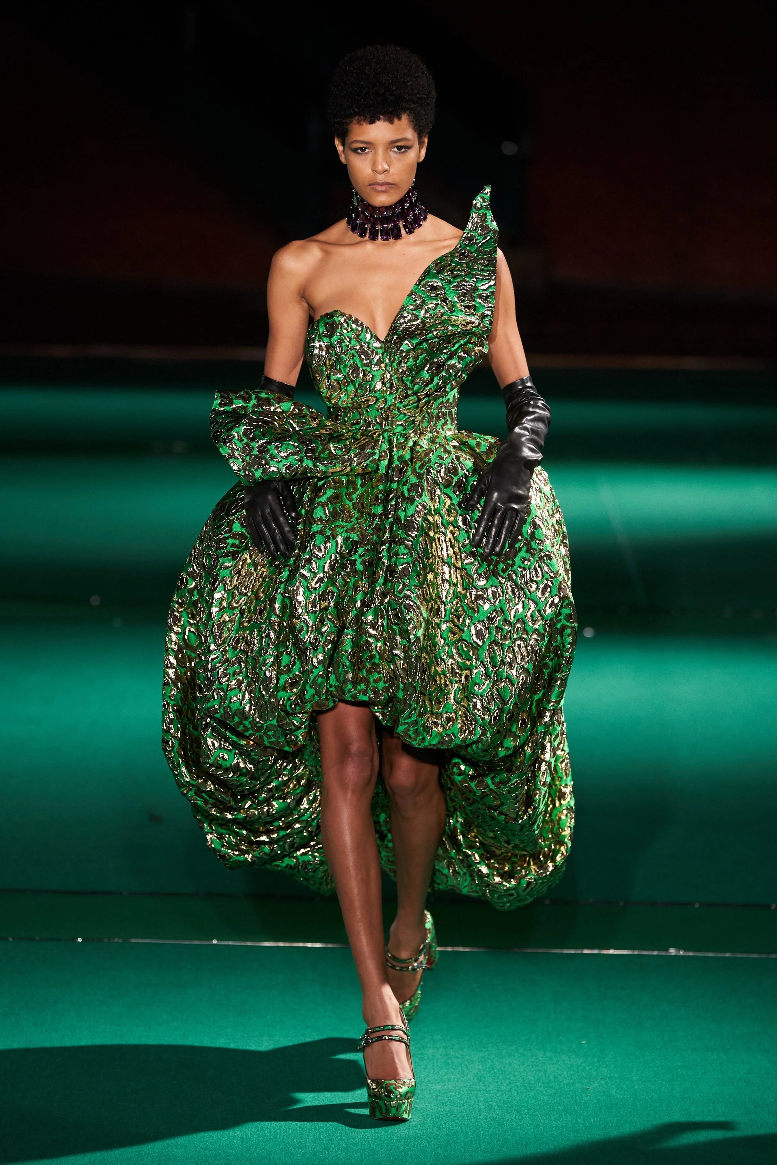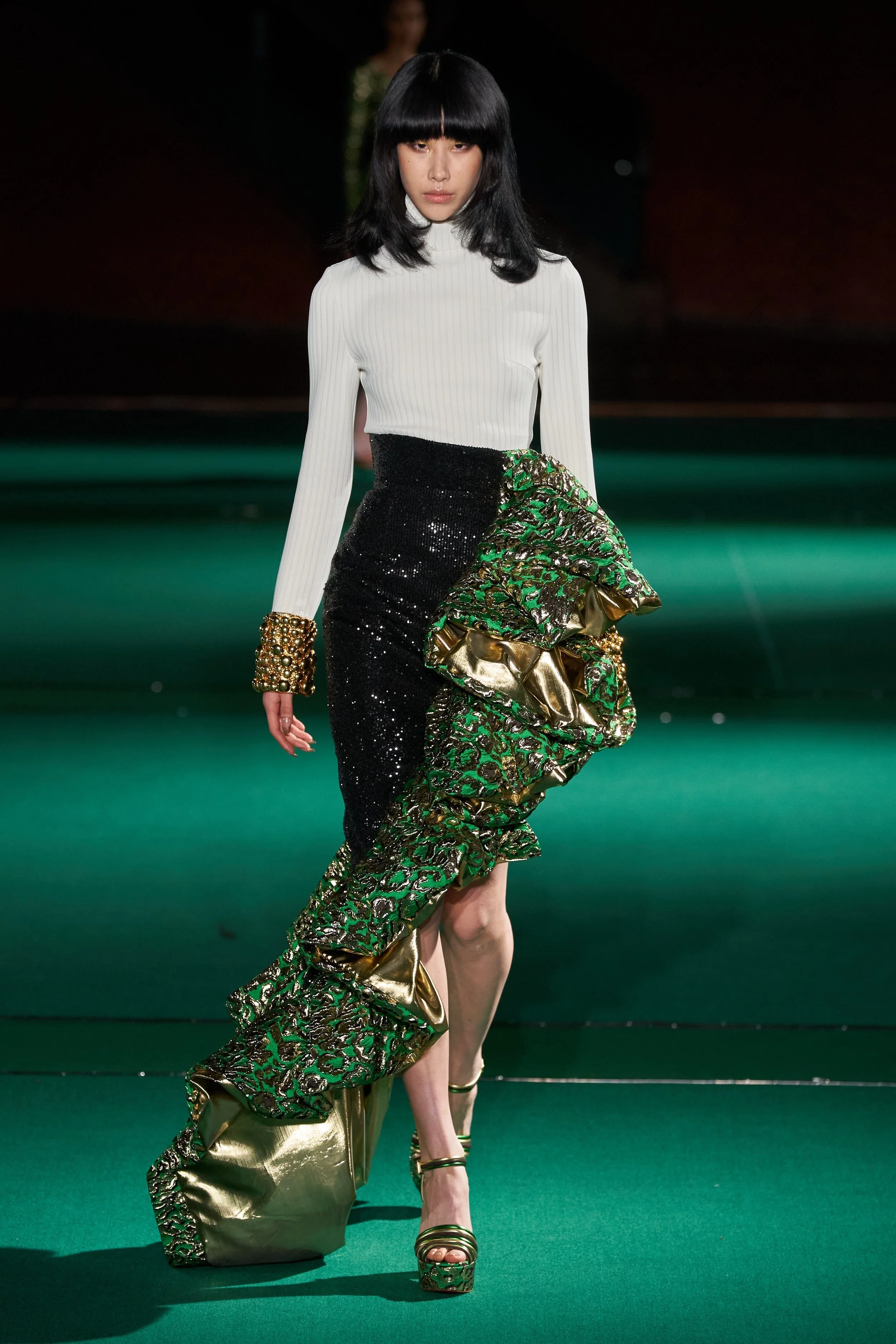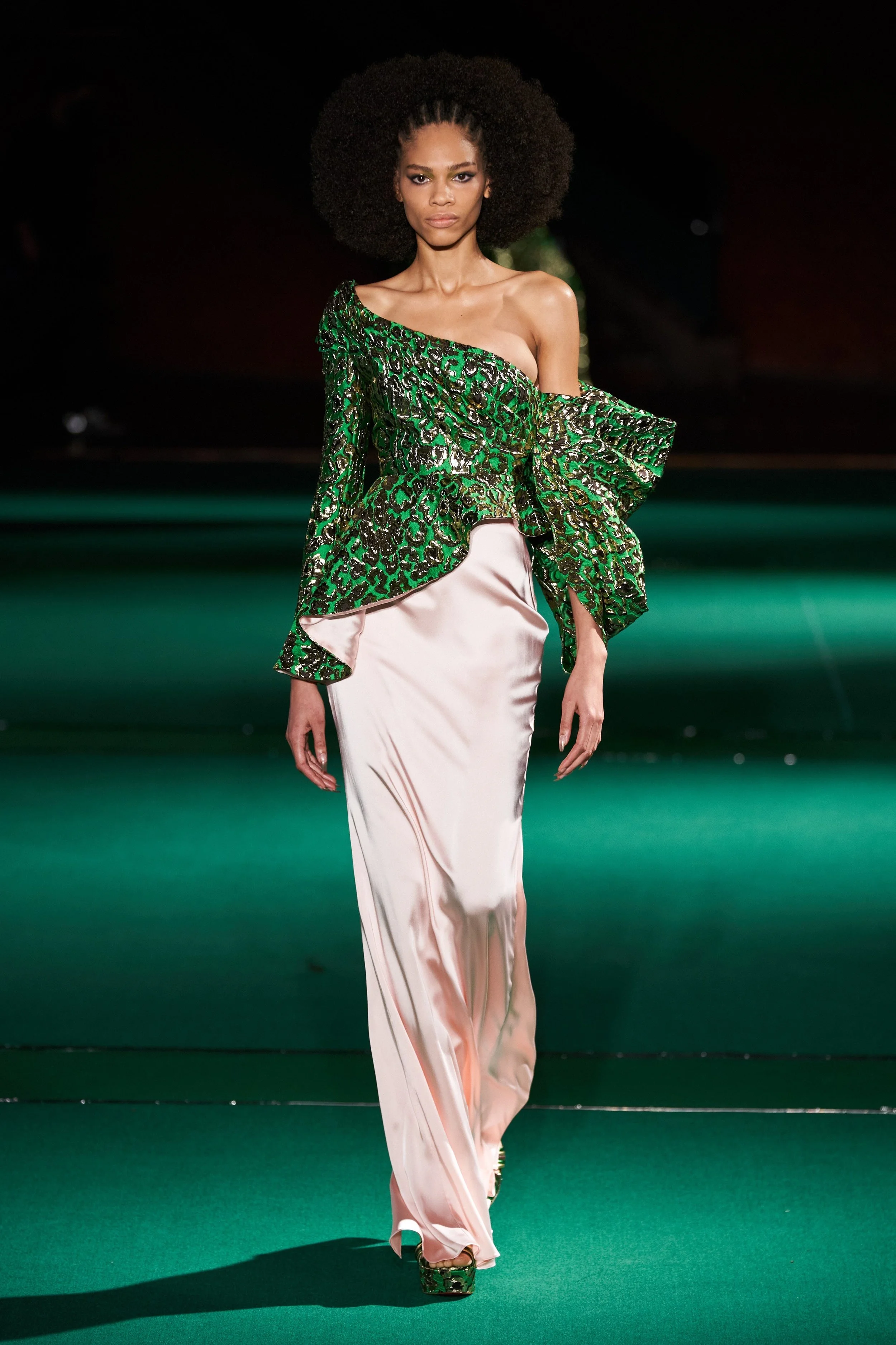 As seen in his show on Saturday evening, the collection opened with a tigeresque cream see-through chiffon that flowed effervescently with the model’s walk, later morphing into powerful green tweed and chartreuse silk that protruded new wave elegance – partially classy, partially punk. A unique stamp to the brand and Michael’s vision are always the fabrics and the tremendous quality of soul he puts into each piece, as he explains to Perfect that a big chunk of his business is custom-based and crafted with meticulous attention to his customers, and particularly the fun, fabulous and feisty ladies of the US south.
