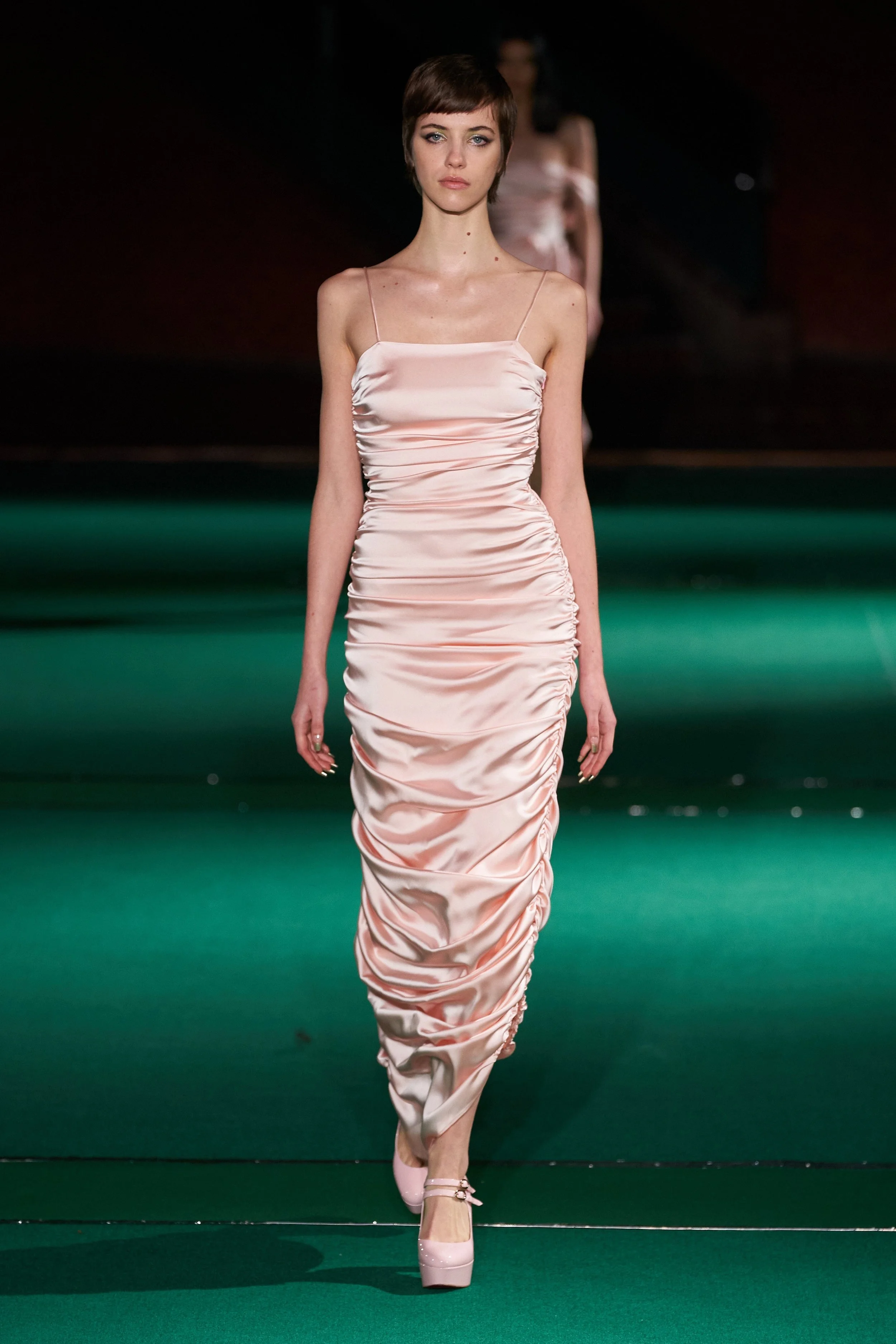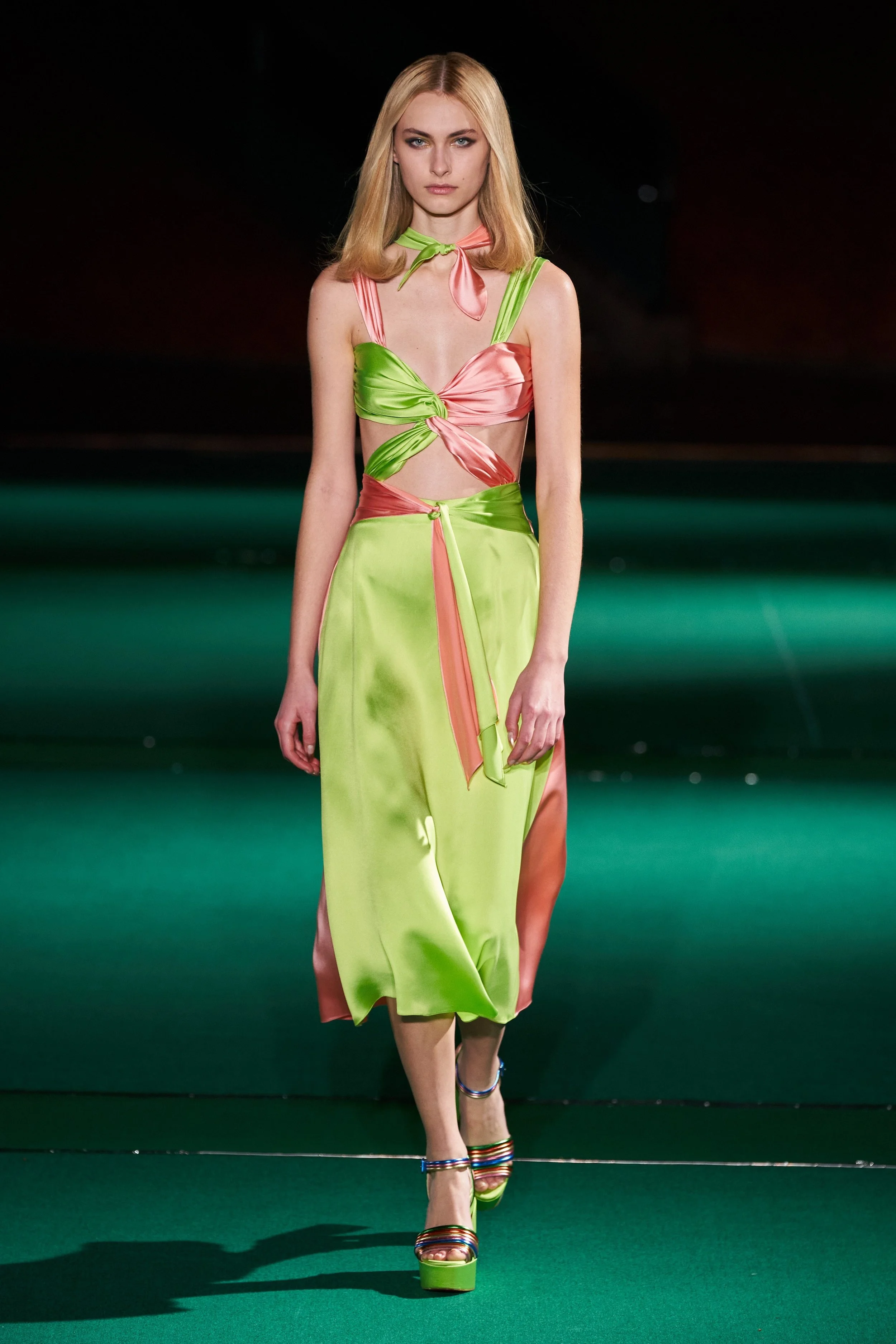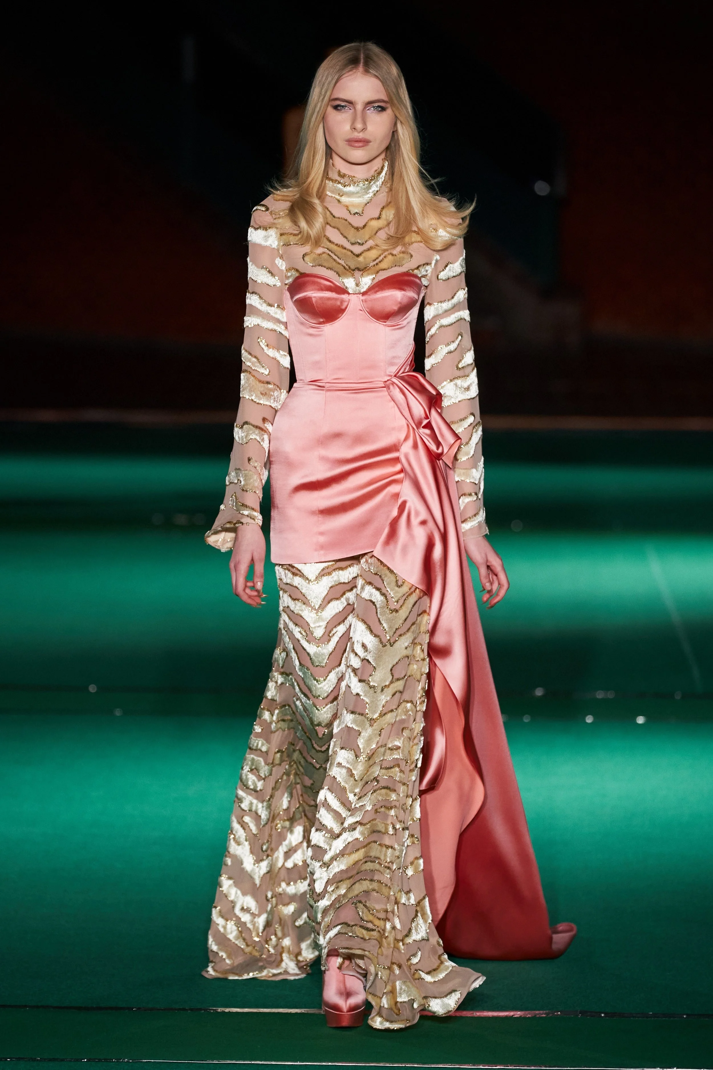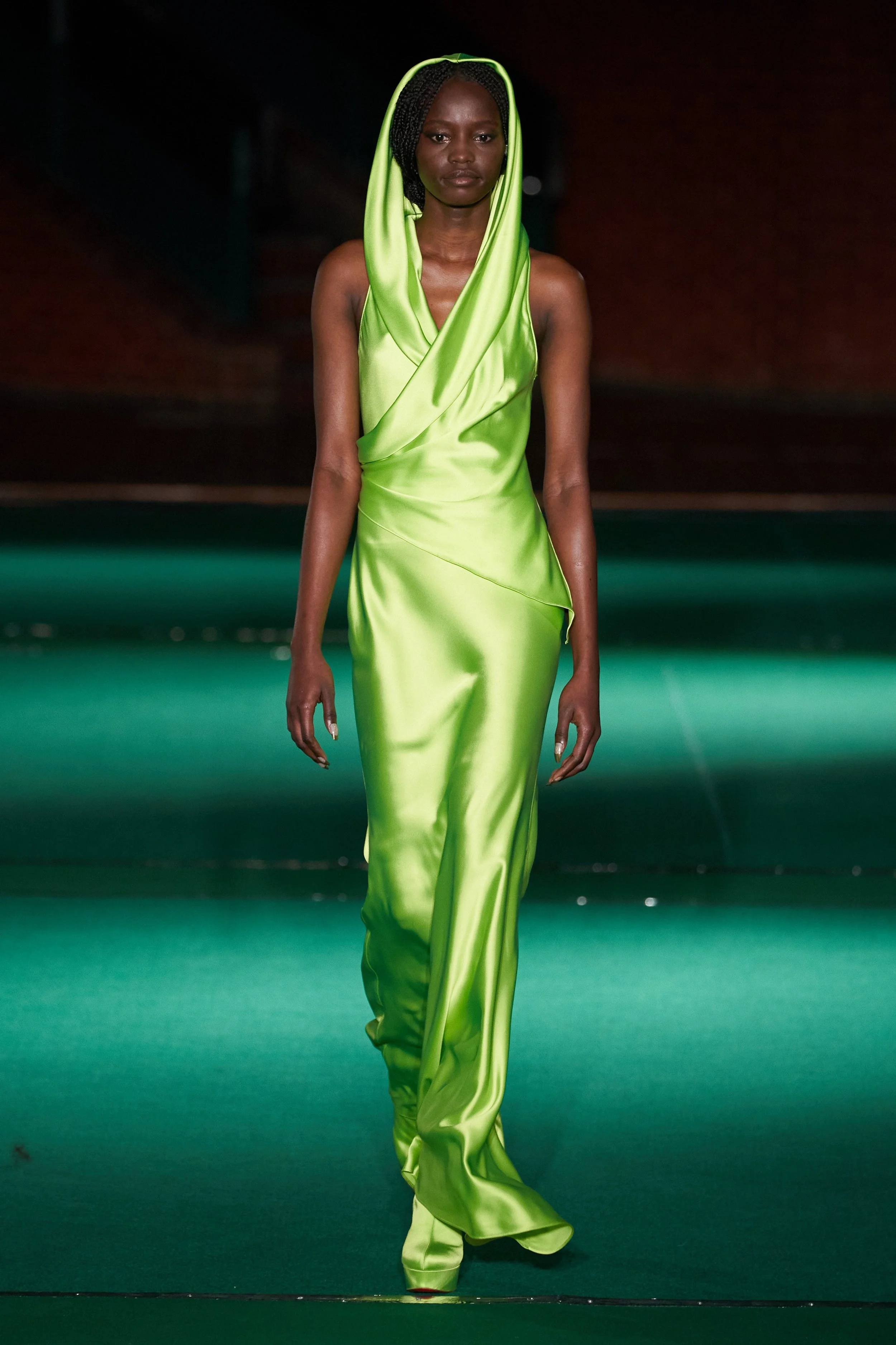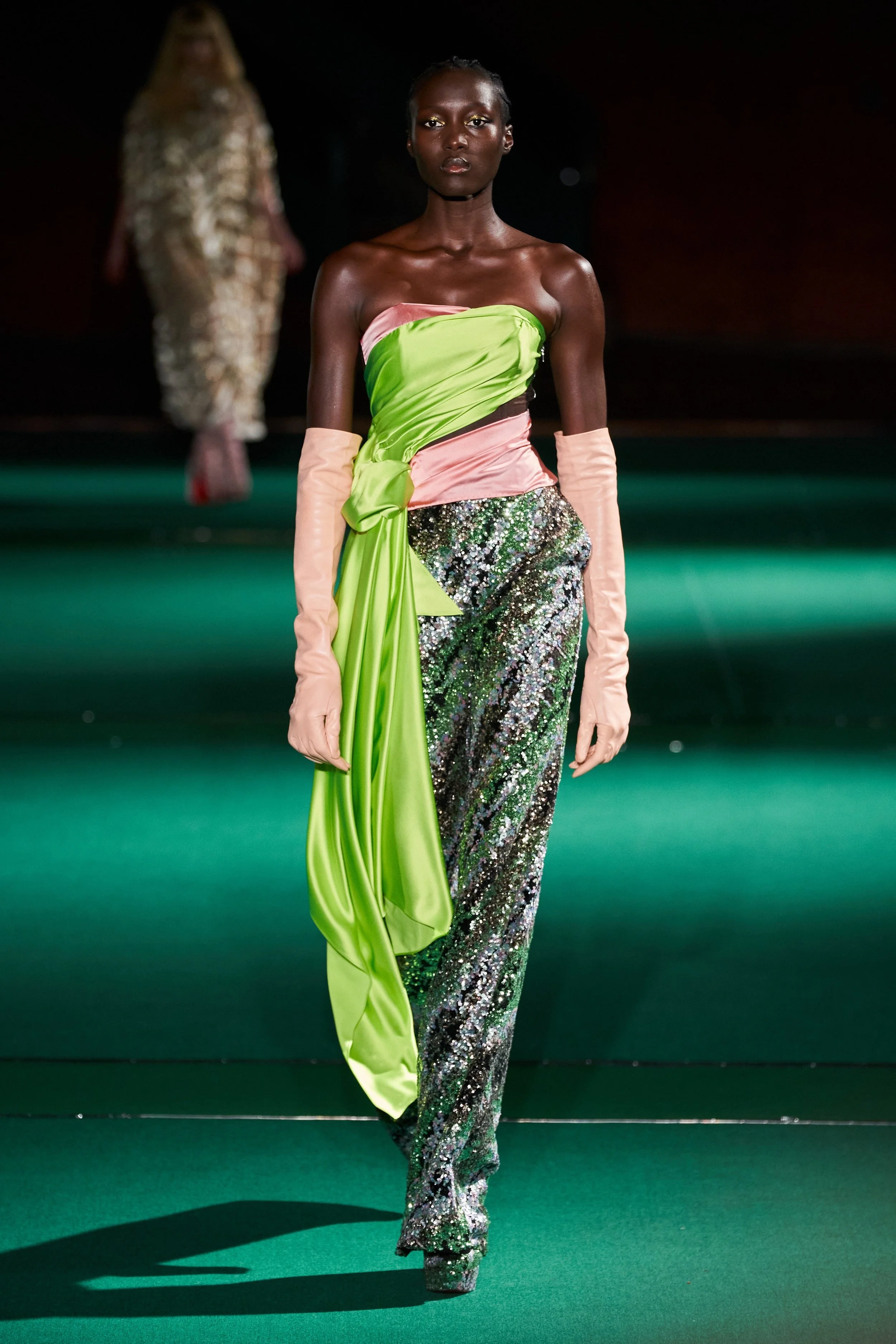 As seen in his show on Saturday evening, the collection opened with a tigeresque cream see-through chiffon that flowed effervescently with the model’s walk, later morphing into powerful green tweed and chartreuse silk that protruded new wave elegance – partially classy, partially punk. A unique stamp to the brand and Michael’s vision are always the fabrics and the tremendous quality of soul he puts into each piece, as he explains to Perfect that a big chunk of his business is custom-based and crafted with meticulous attention to his customers, and particularly the fun, fabulous and feisty ladies of the US south.