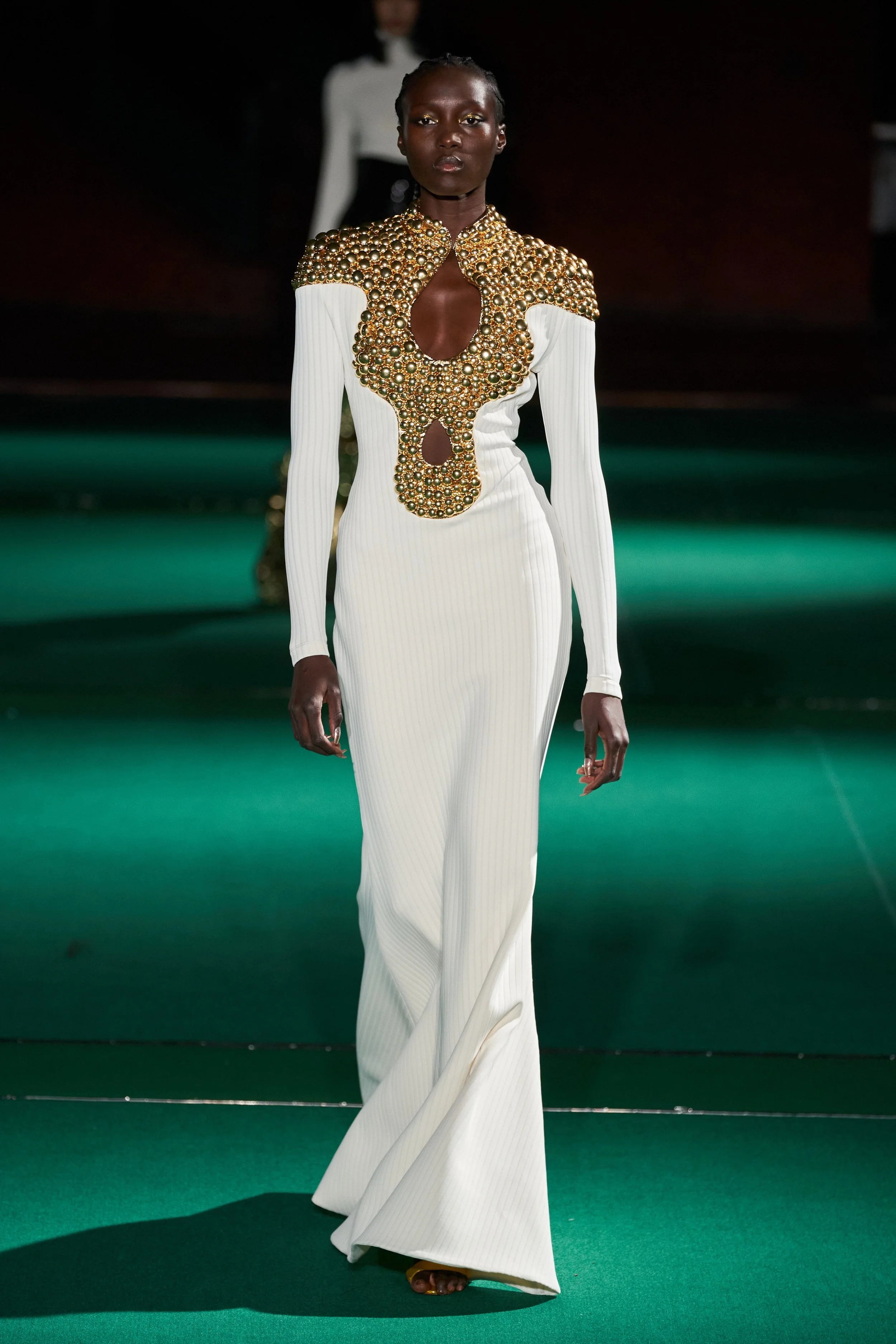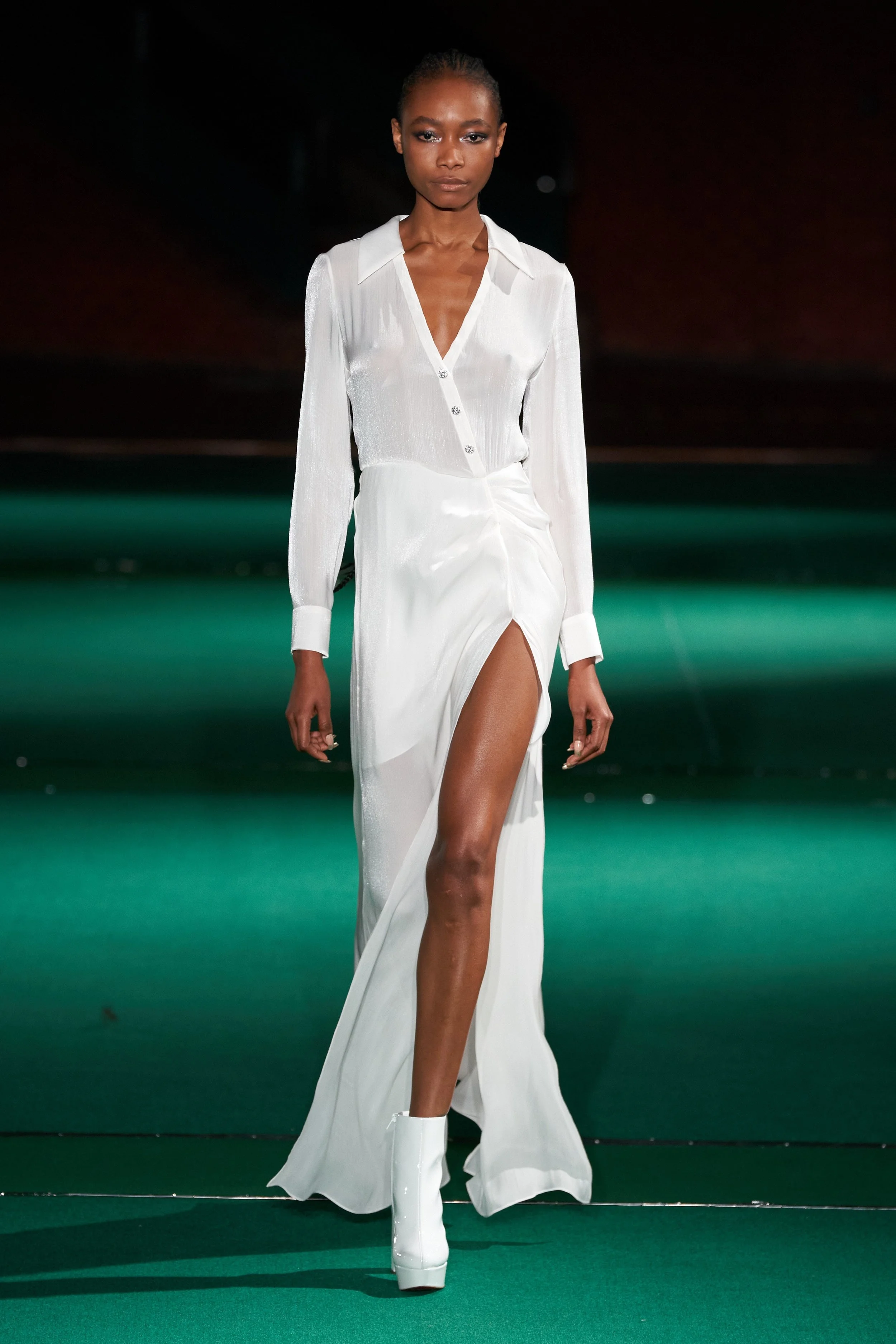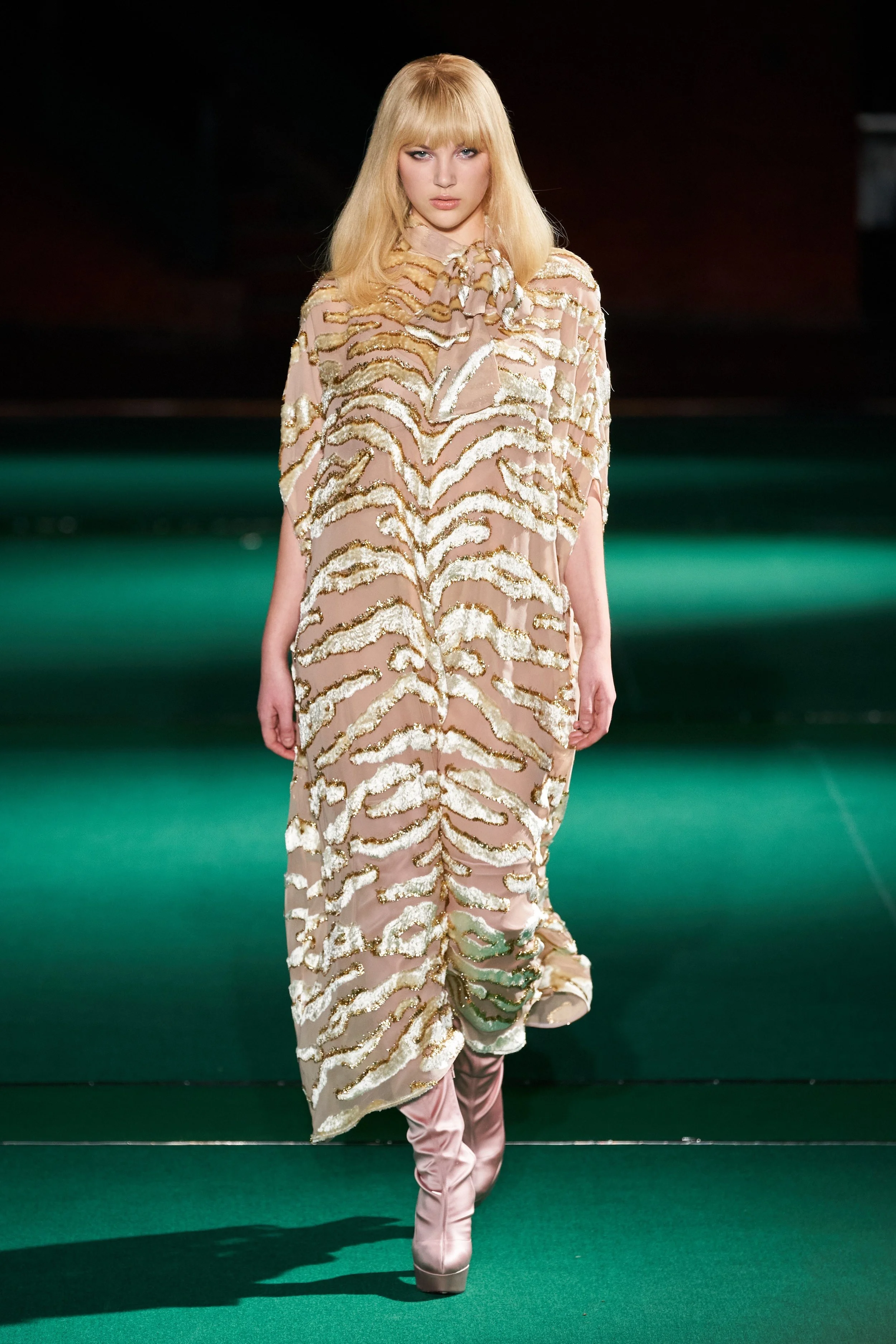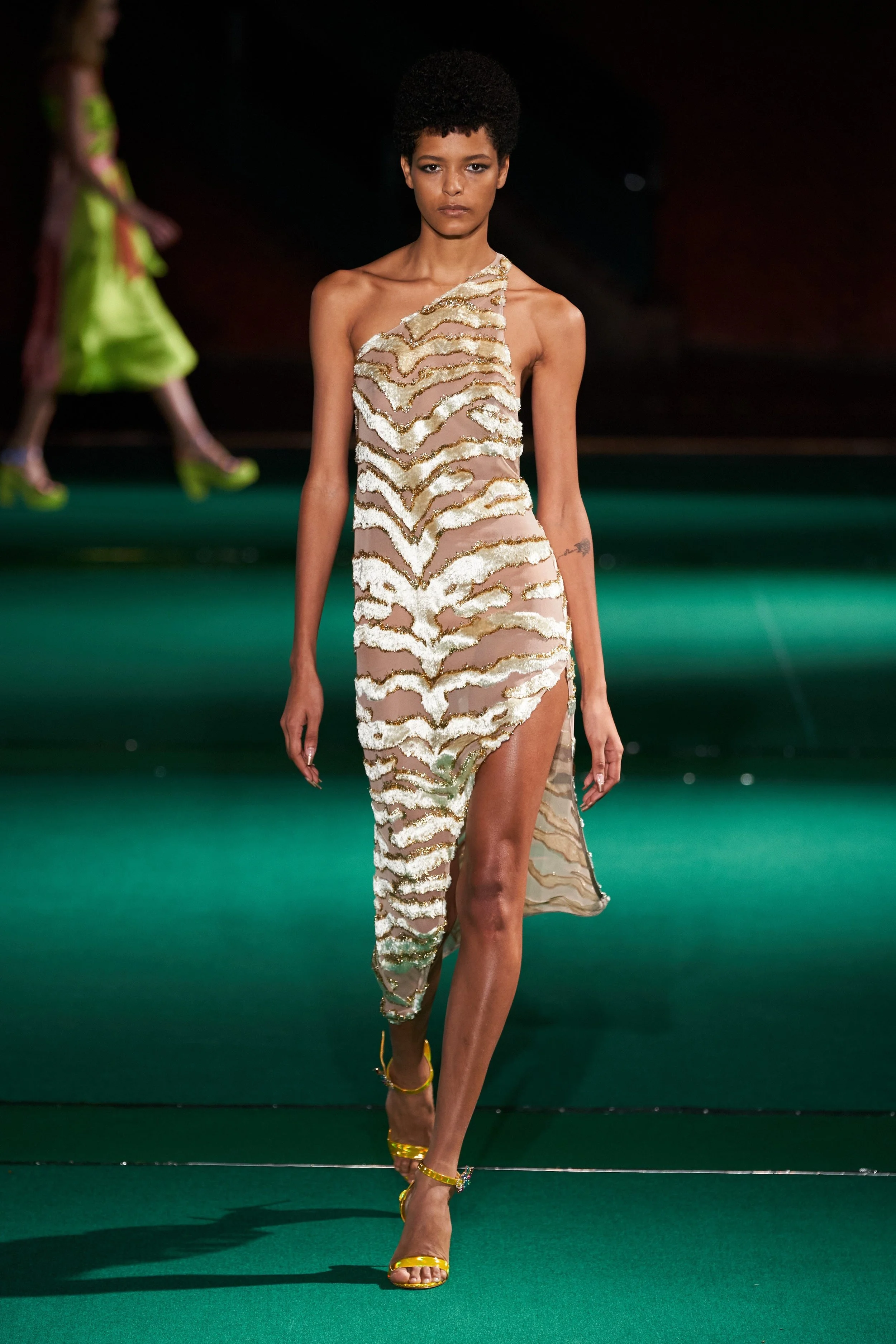 As seen in his show on Saturday evening, the collection opened with a tigeresque cream see-through chiffon that flowed effervescently with the model’s walk, later morphing into powerful green tweed and chartreuse silk that protruded new wave elegance – partially classy, partially punk. A unique stamp to the brand and Michael’s vision are always the fabrics and the tremendous quality of soul he puts into each piece, as he explains to Perfect that a big chunk of his business is custom-based and crafted with meticulous attention to his customers, and particularly the fun, fabulous and feisty ladies of the US south.