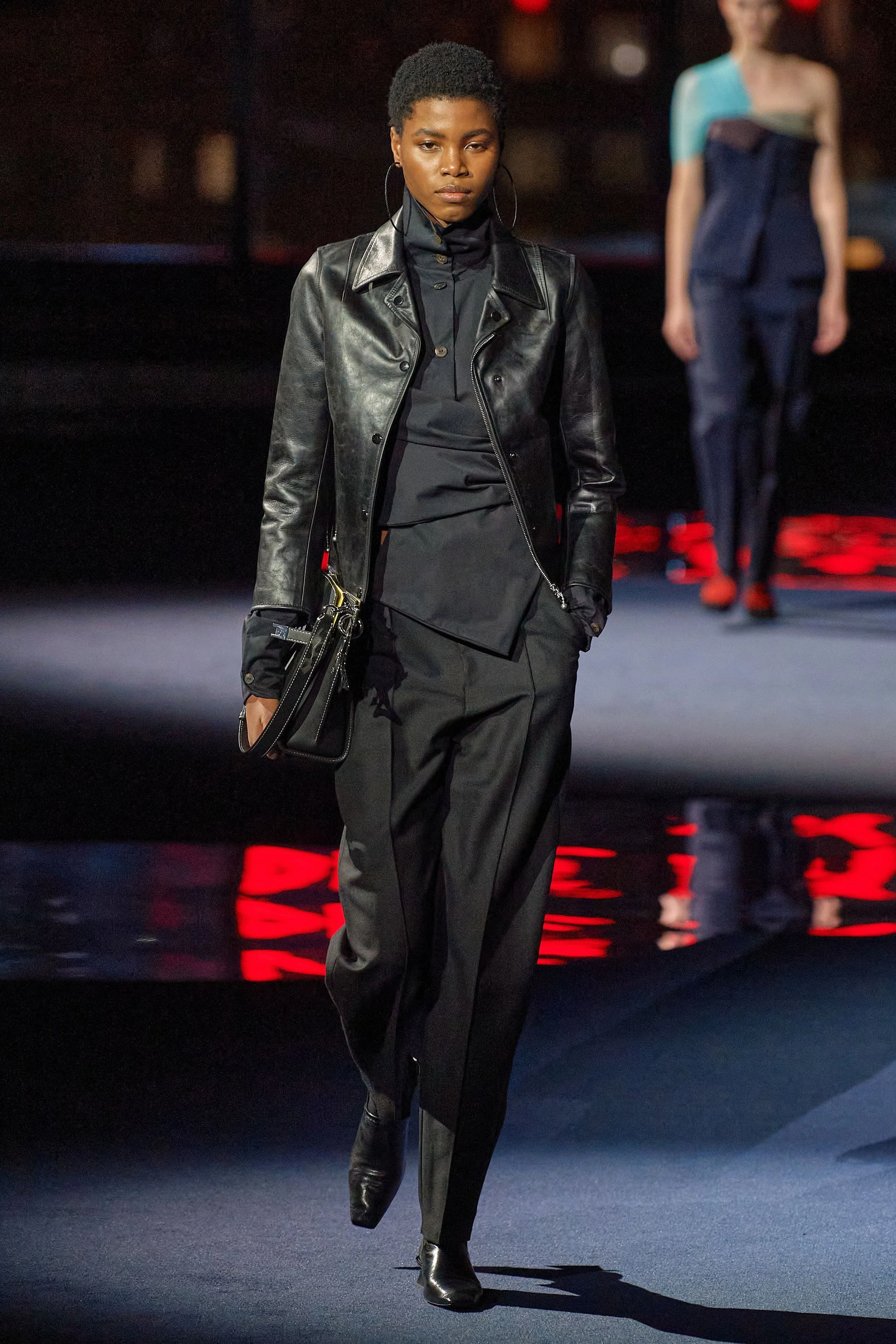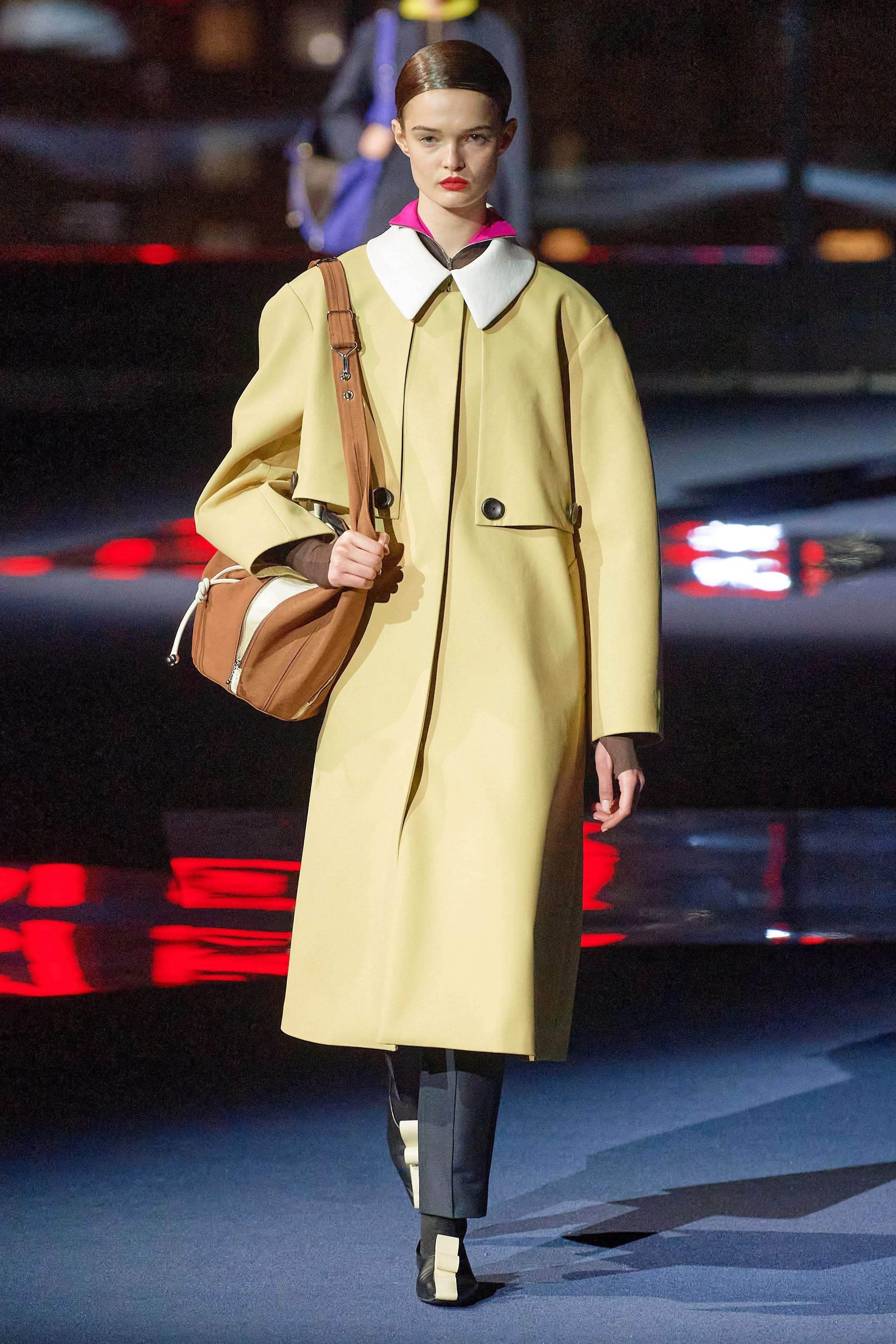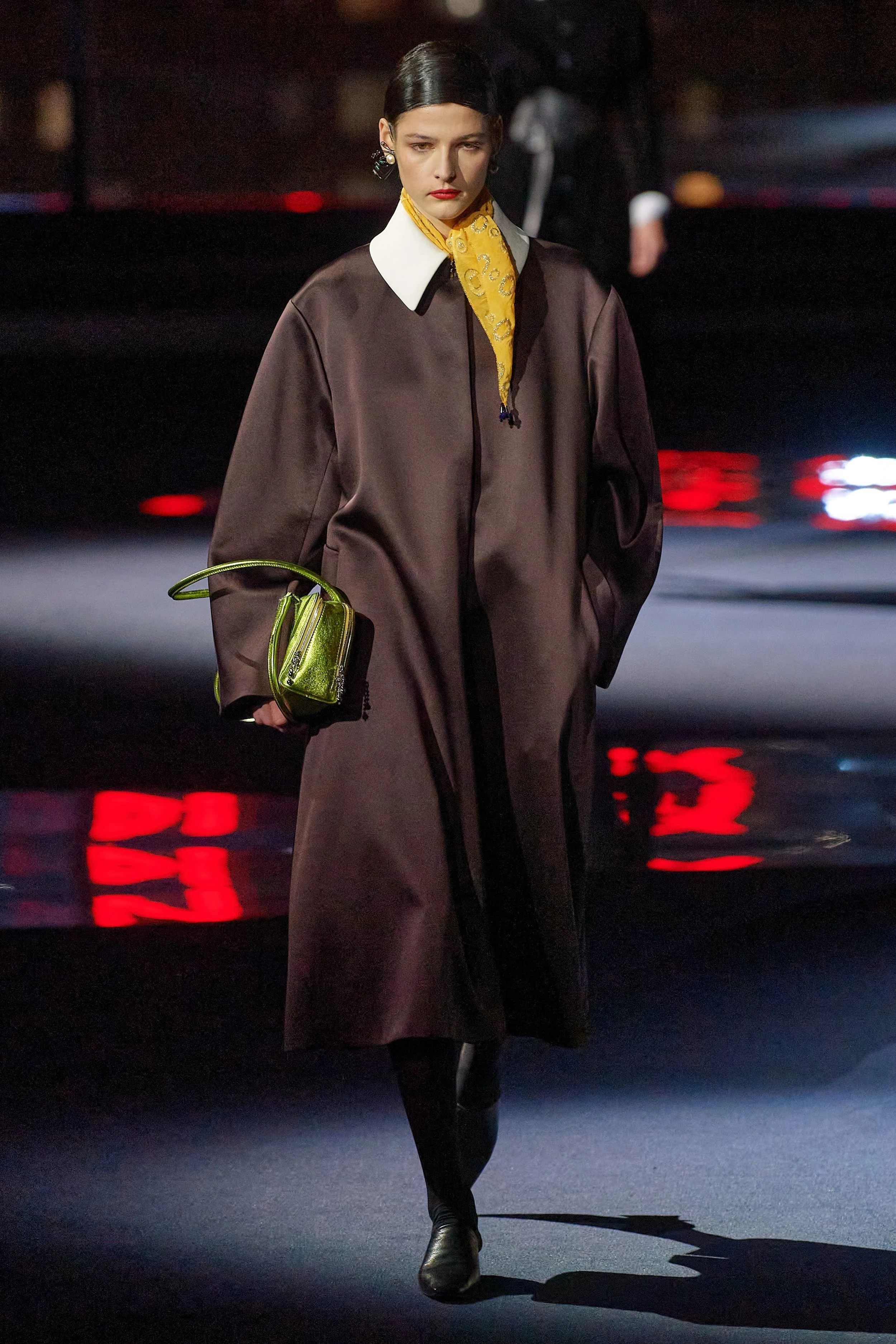 This majestic take on Gotham – sky view; the night city illuminated in all its never-sleeps glory – was very different than that which Burch depicted last season, when she installed a charming street fair on Mercer Street as the backdrop for her lineup of relaxed dresses that paid homage to trailblazing American sportswear designer Claire McCardell. That collection was all about charm, approachability, and connectedness. This one was about authority and command.