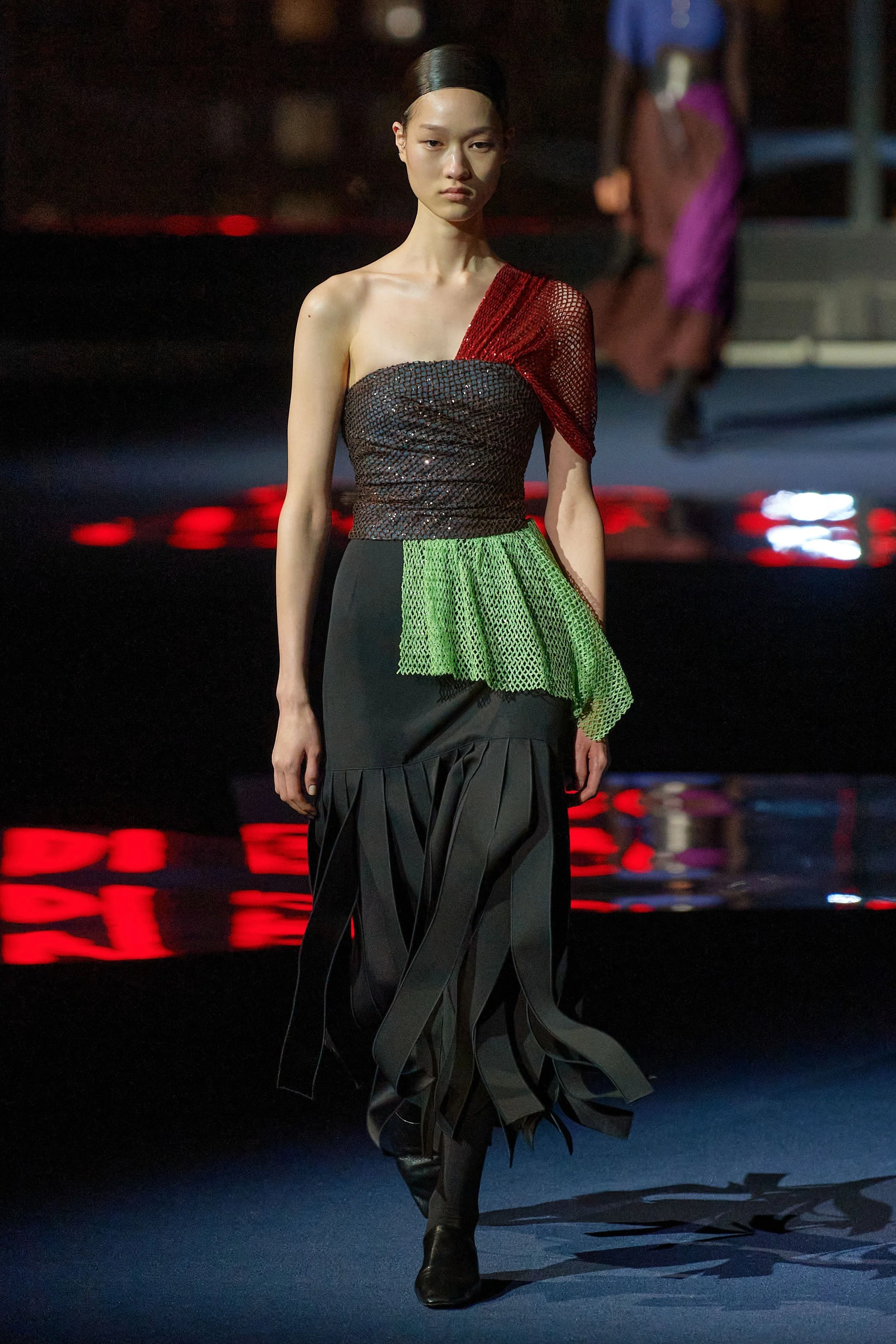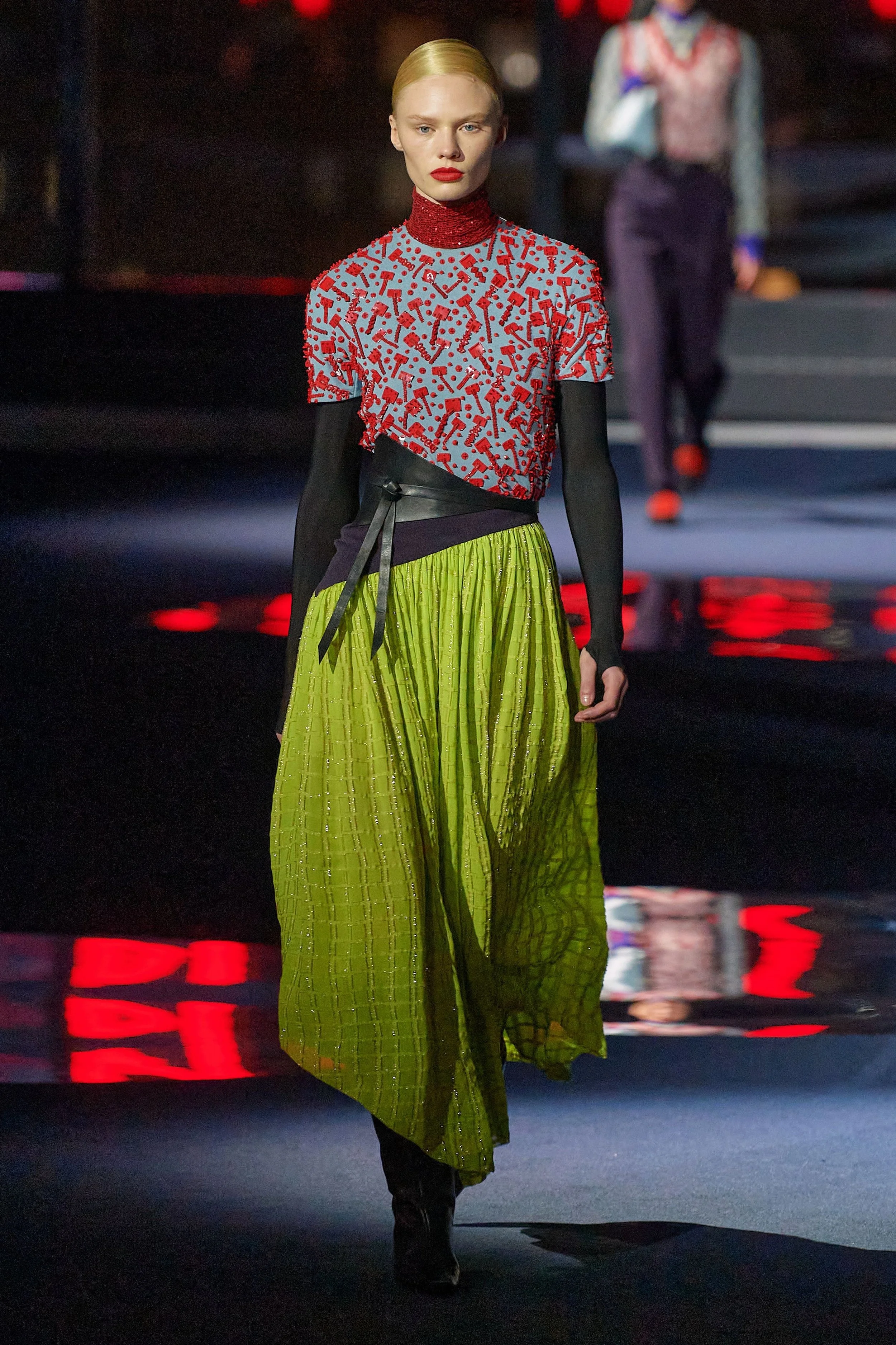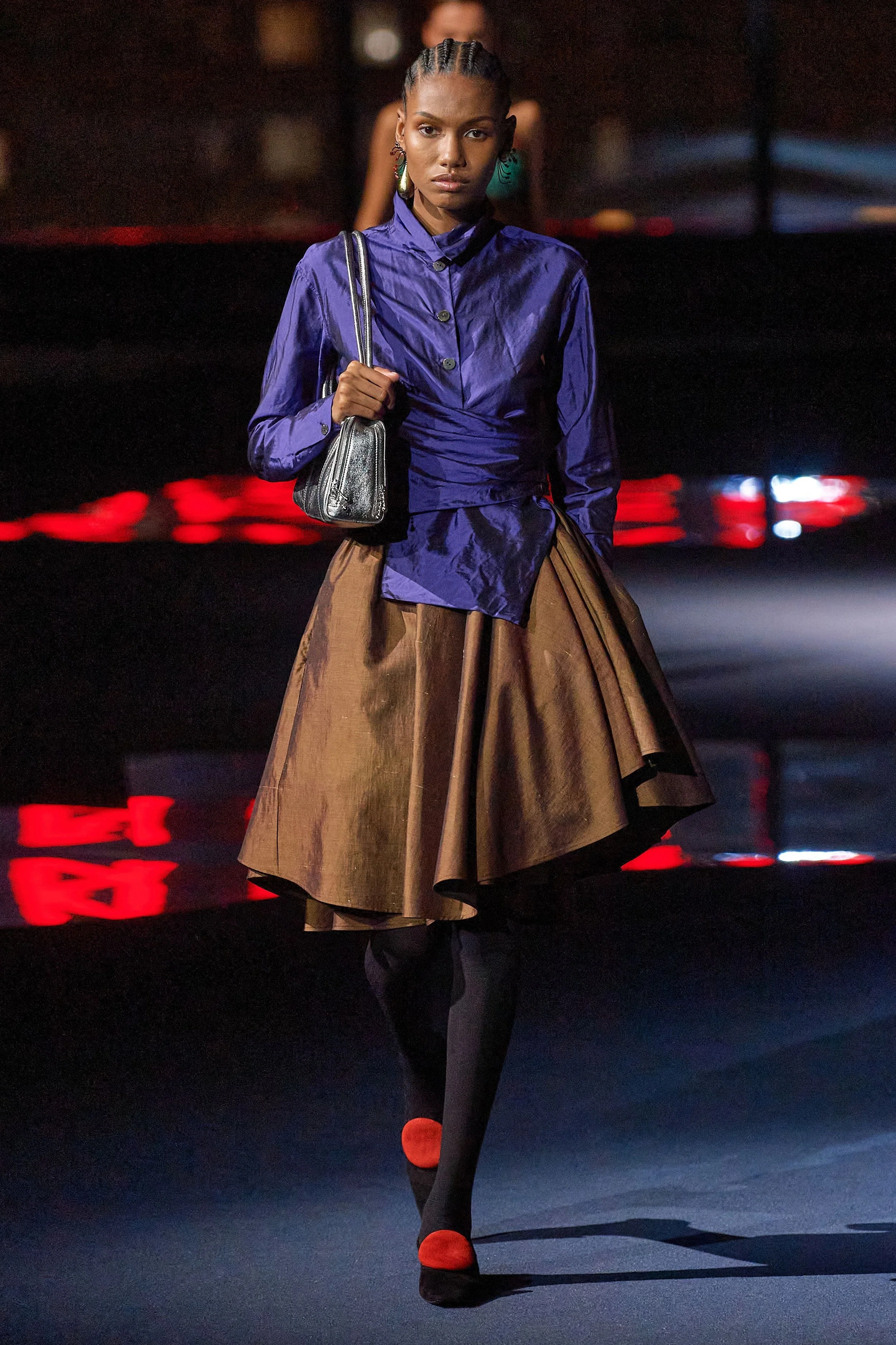 This majestic take on Gotham – sky view; the night city illuminated in all its never-sleeps glory – was very different than that which Burch depicted last season, when she installed a charming street fair on Mercer Street as the backdrop for her lineup of relaxed dresses that paid homage to trailblazing American sportswear designer Claire McCardell. That collection was all about charm, approachability, and connectedness. This one was about authority and command.