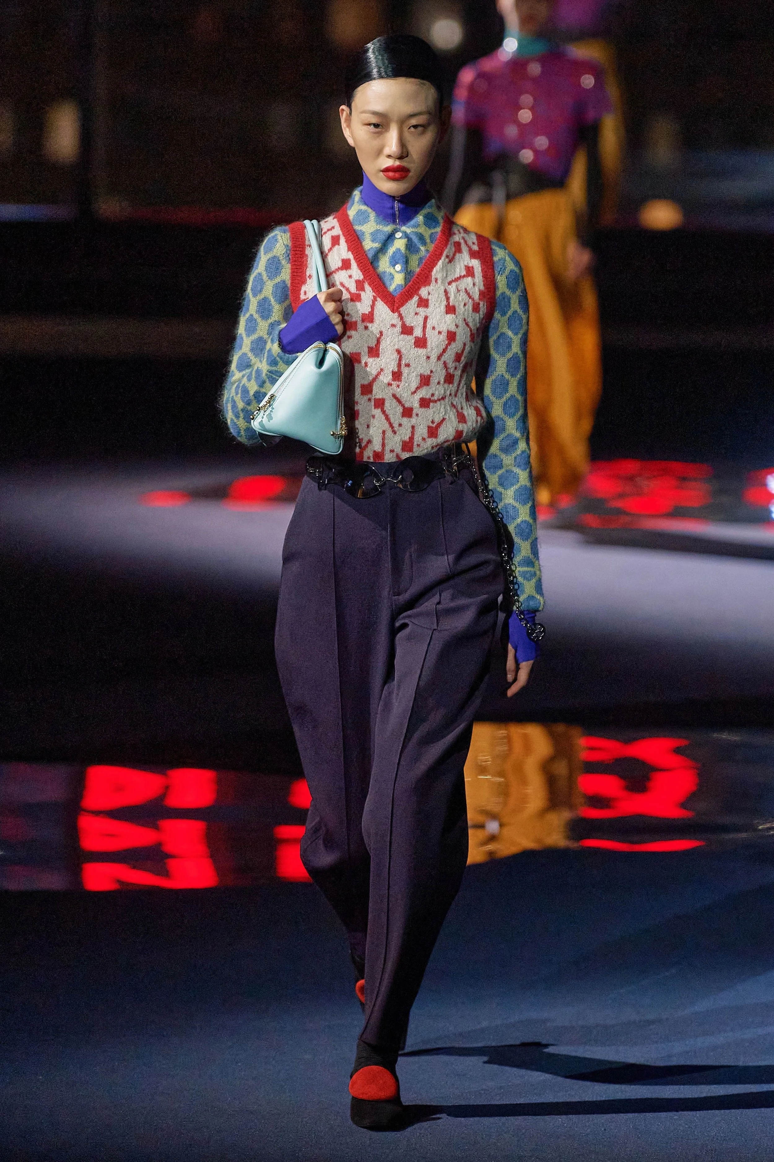 Tory Burch showed in a high-in-the-sky space in Hudson Commons, its towering windows offering spectacular views of New York at night. Across the street, the iconic New Yorker Hotel had reset its famous neon banner to read: “The New Yorker (Heart) Tory.”